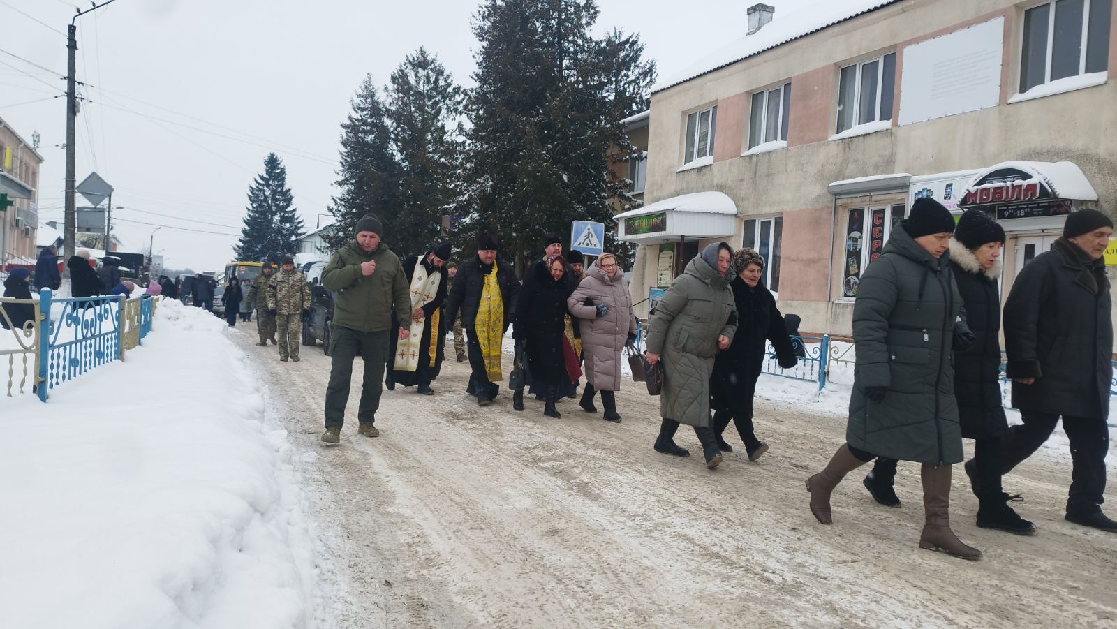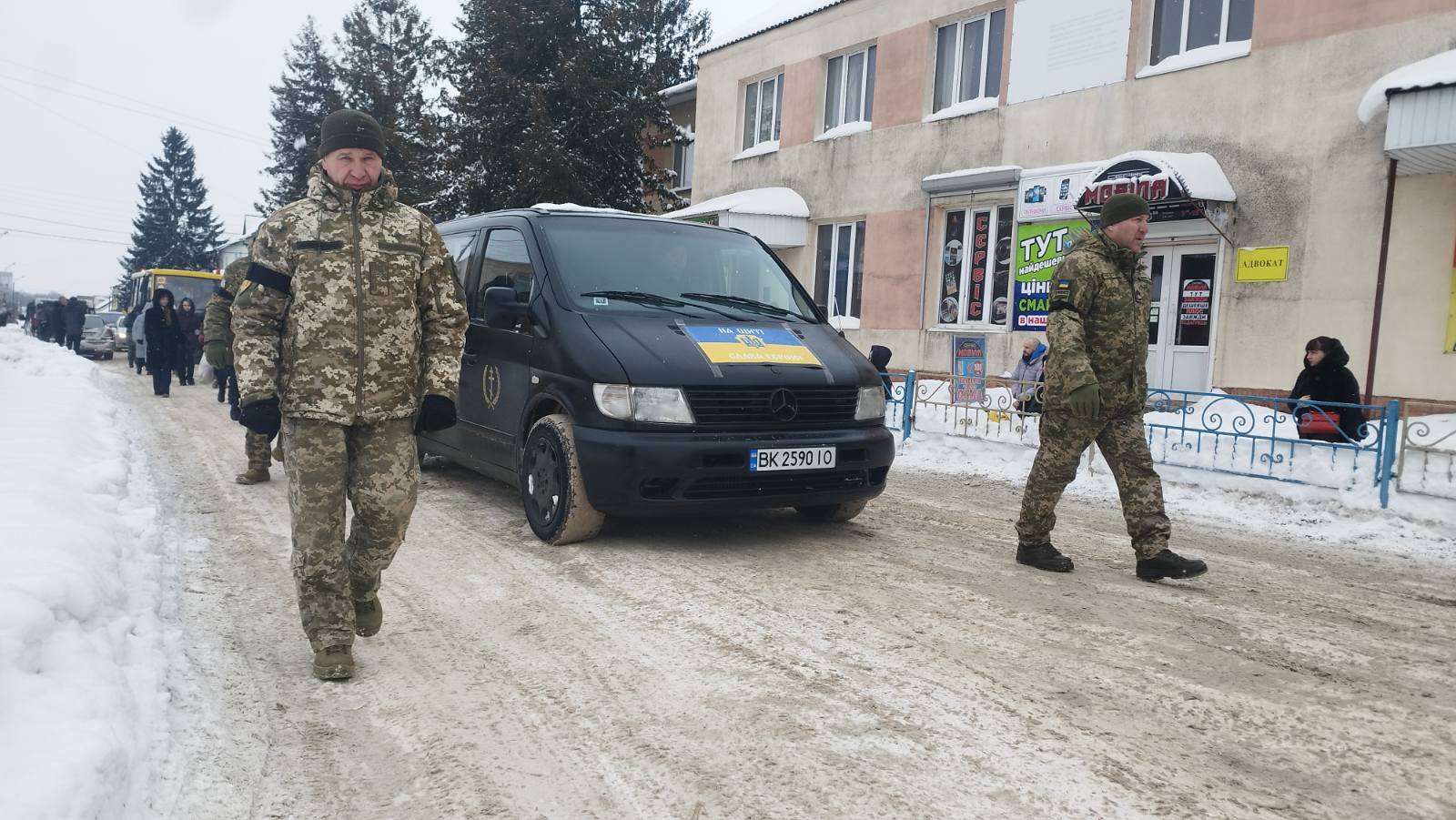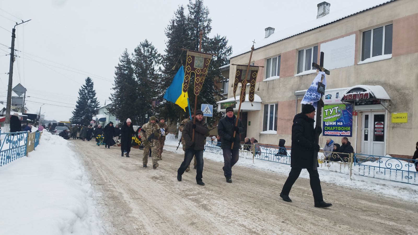 Місто завмерло. Під низьким зимовим небом люди ставали навколішки, тримаючи в руках квіти й прапори, проводжаючи Вадима в його останню земну дорогу. Дзвони били повільно і глухо, ніби саме небо плакало разом із нами.