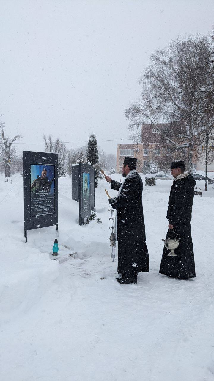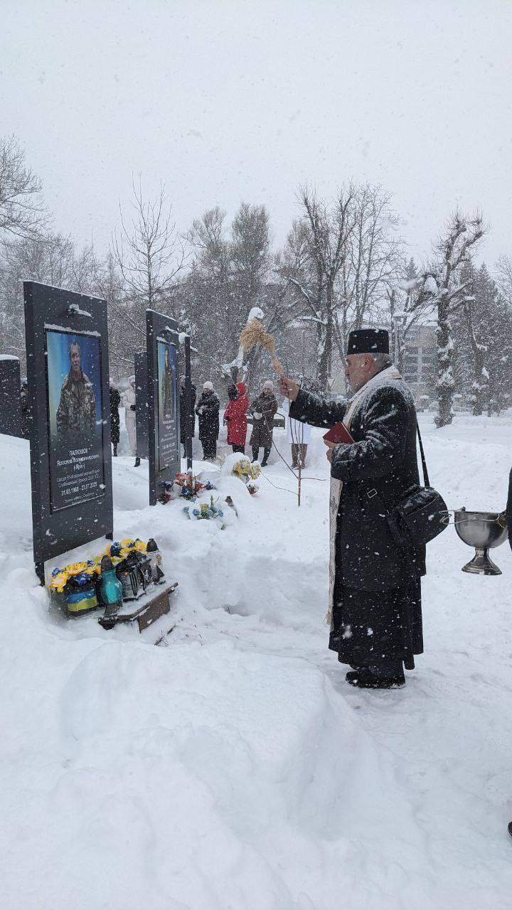 Під час спільної молитви священнослужителі освятили стели та помолилися за упокій душ воїнів. Відтепер на Алеї пам’яті навіки закарбовано ще імена Гуменюка Віктора та Палюшка Ярослава.