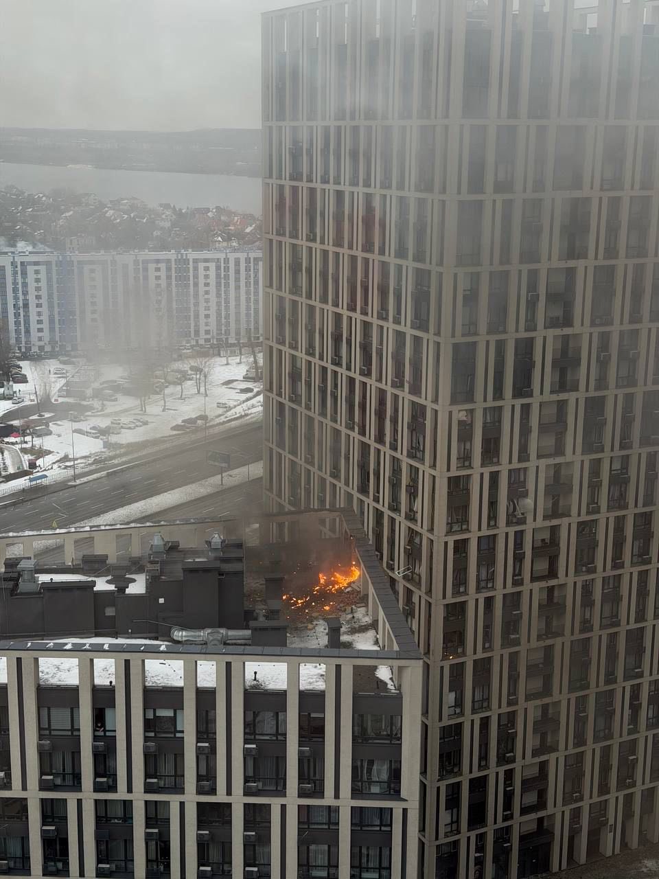 Було пошкоджено 24-поверховий житловий будинок — виникла пожежа на верхньому поверсі, частково зруйновані 24-й і технічний поверхи. Також зафіксовані пошкодження будинків на вул. Павла Чубинського та Зарічній.
