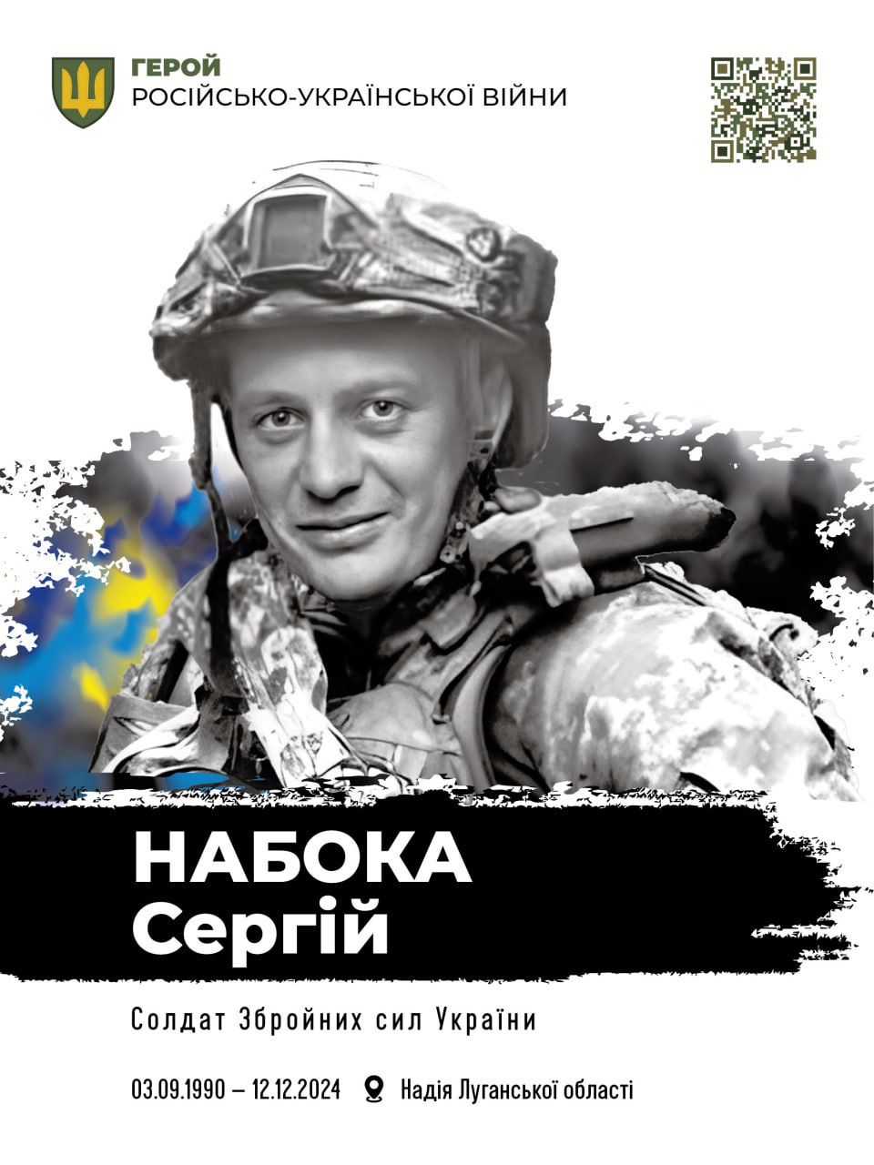 Сьогодні вшановуємо пам’ять солдата Збройних Сил України Сергія Набока (03.09.1990-12.12.2024).