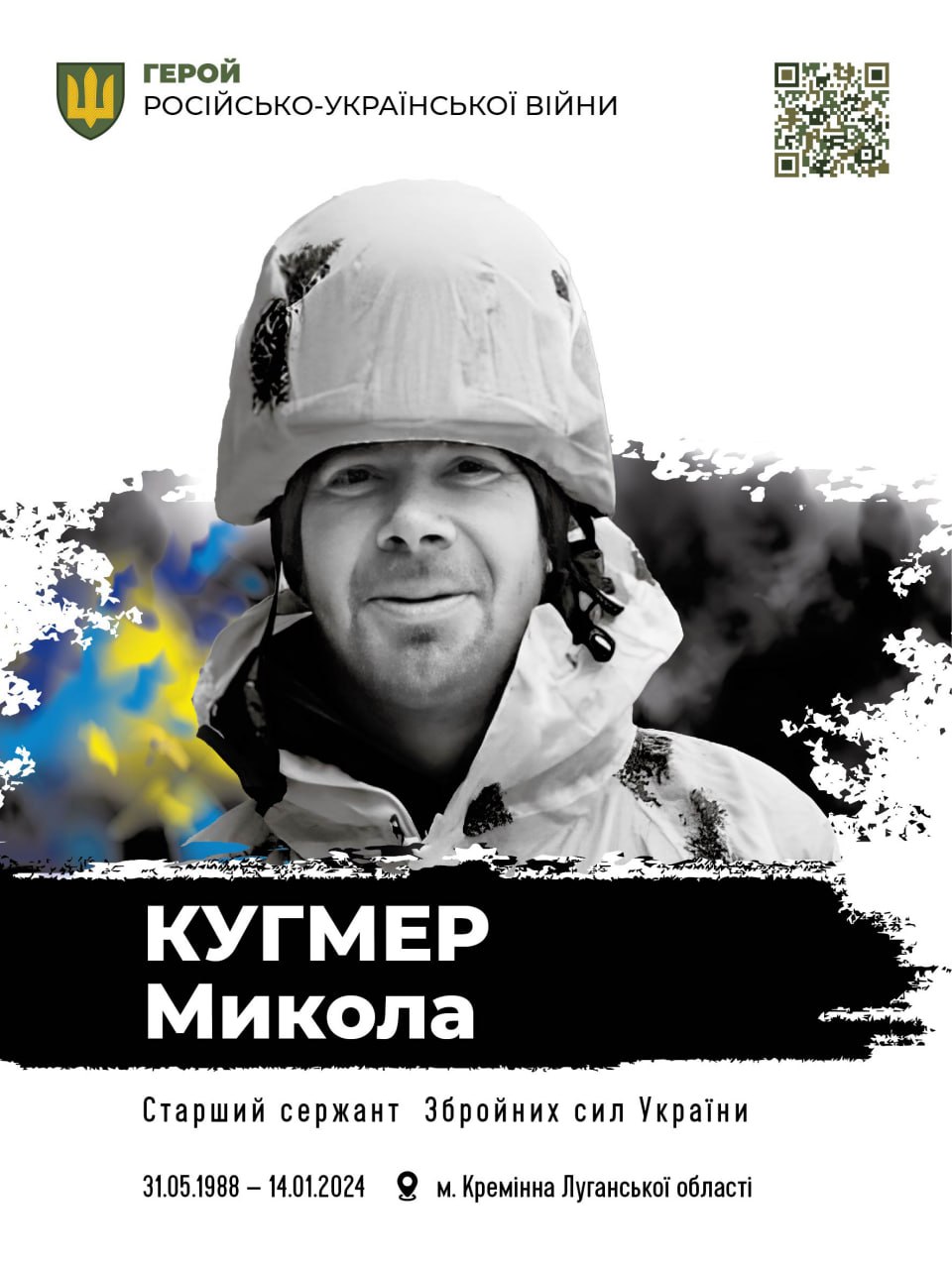 Сьогодні вшановуємо пам’ять старшого сержанта Збройних Сил України Миколи Кугмера (31.05.1988-14.01.2024).