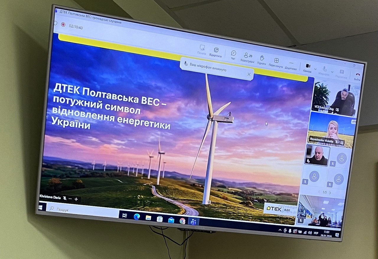 Також сьогодні відбулися громадські слухання щодо будівництва та експлуатації ДТЕК Полтавської ВЕС за участі представників Міністерства економіки, довкілля та сільського господарства України. Головні екологи ДТЕК ВДЕ презентували результати оцінки впливу на довкілля та відповіли на запитання учасників.