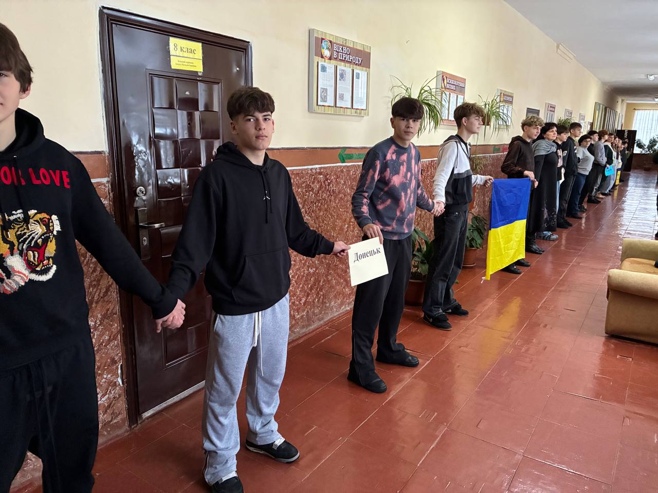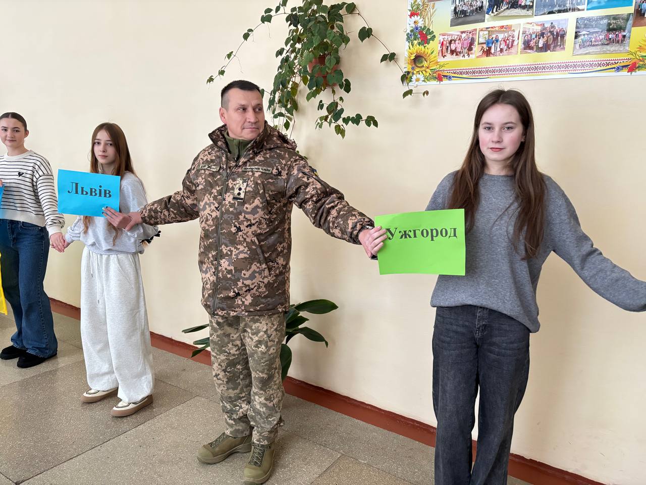 Сьогодні в нашому закладі відбувся захід до Дня Соборності України. Учні, вчителі та гості ( начальник відділення ЦВС першого відділу Хустського РТЦк та СП), об’єдналися в символічний ланцюг єдності, взявшись за руки, як знак згуртованості, миру та неподільності українського народу. Під час заходу згадали історичне значення Акту Злуки 22 січня 1919 року та наголосили на важливості єдності України сьогодні. Захід пройшов у піднесеній, патріотичній атмосфері й став нагадуванням, що сила України — в єдності її громадян.