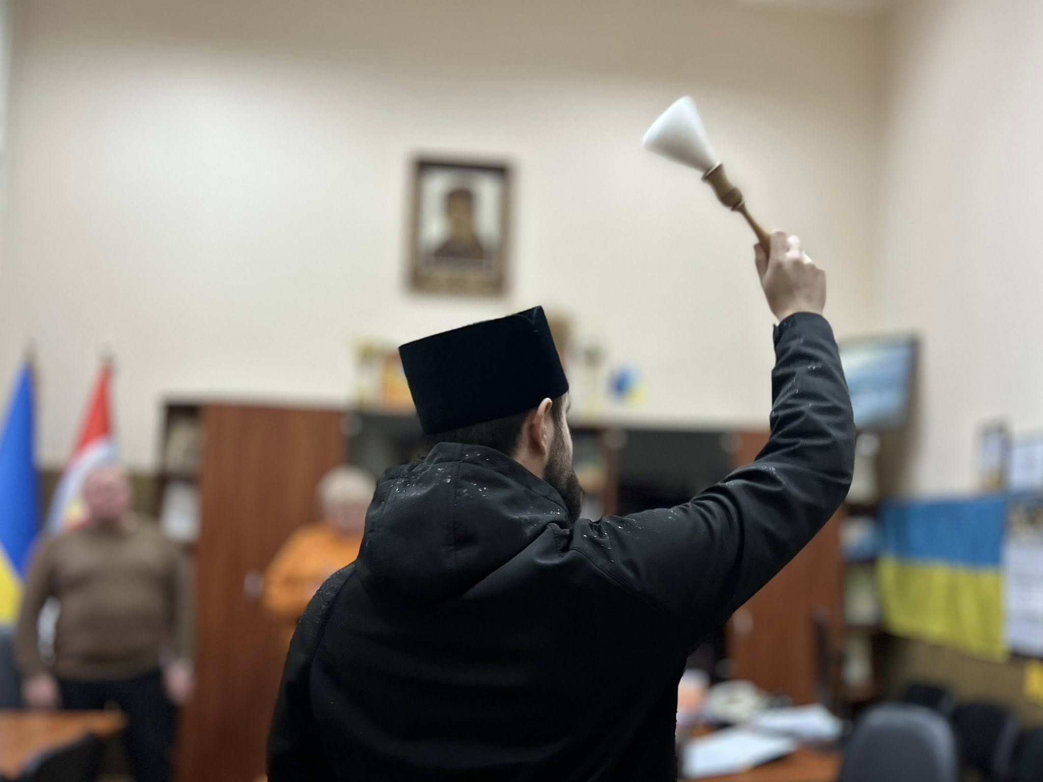 Присутні долучилися до спільної молитви, після завершення якої отець Андрій здійснив освячення приміщення Виконавчого комітету.