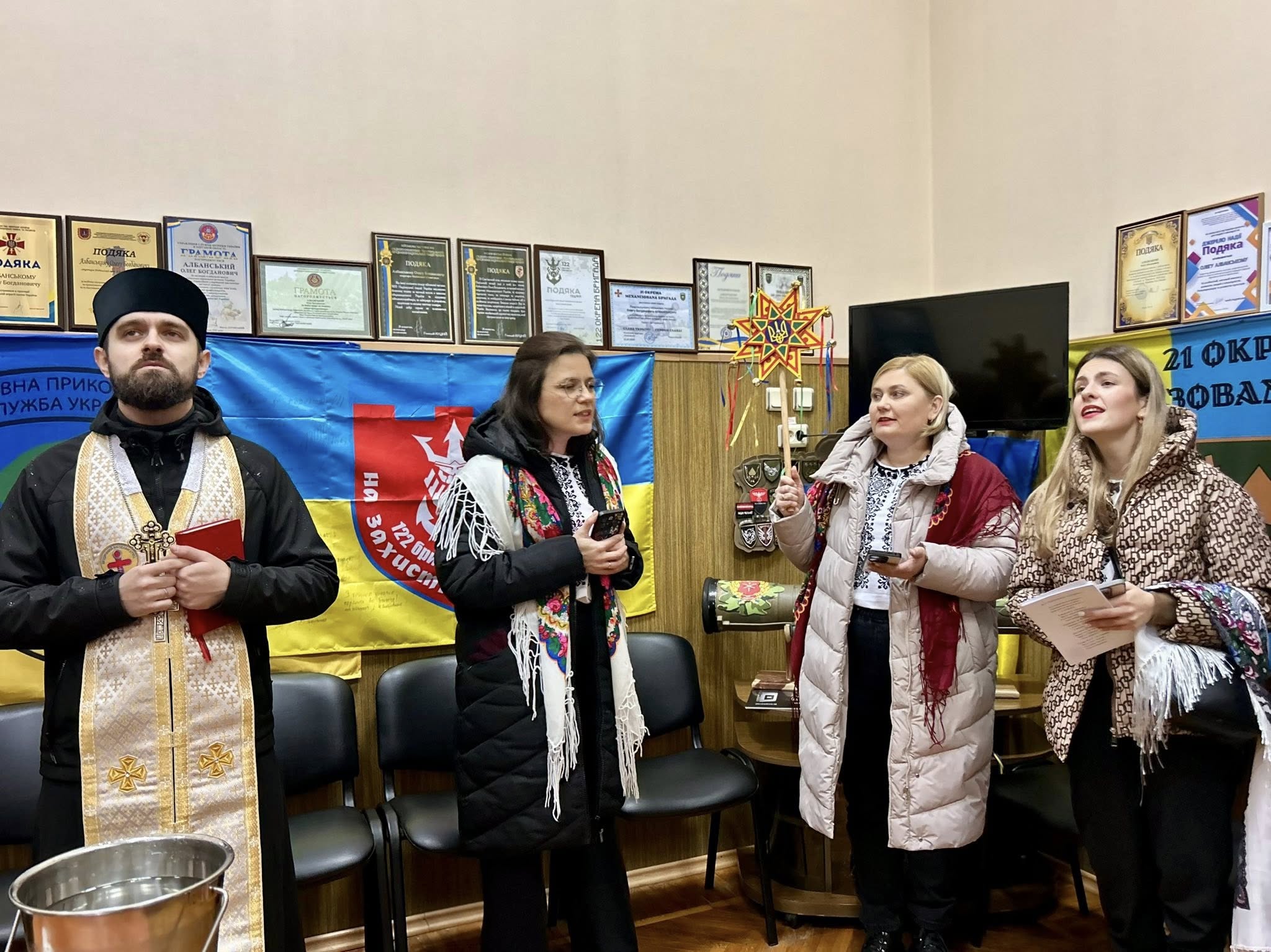 Сьогодні до Виконавчого комітету Подільської міської ради з різдвяною колядою завітали прихожани та настоятель парафії Успіння Пресвятої Богородиці Української Греко-Католицької Церкви м. Подільськ – отець Андрій.