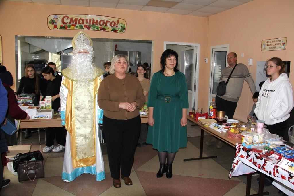 До учасників «торжища» завітали і керівниця ліцею Тетяна Грицай, і заступниця голови громади Зоя Короленко, і навіть улюбленець дітей – Святий Миколай! Усі вони вітали присутніх з наближенням зимових свят, говорили про важливість такої місії – допомагати захисникам, які тримають оборону на передовій, бажали добра, успіхів та вдалої торгівлі. Зокрема, Тетяна Леонідівна подякувала батькам за допомогу і підтримку в проведенні ярмарку, де представлено чимало смаколиків, зроблених їхніми руками. Зоя Петрівна передала вітання від голови громади Віктора Дубовича і висловила вдячність за кошти, які будуть зібрані під час ярмарку і передані українським воїнам. «Хай скоріше настане мир і захисники та захисниці повернуться додому!» – говорила вона. А Святий Миколай пообіцяв цієї ночі нікому не класти під подушку різочку, а лише бажані подарунки!