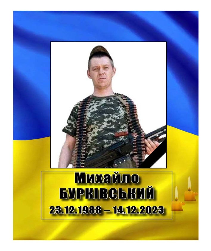 🕯️Проте війна безжальна… 14 грудня 2023 року в результаті ворожого мінометного обстрілу поблизу населеного пункту Кліщіївка Бахмутського району Донецької області наш безстрашний земляк Михайло Бурківський загинув.