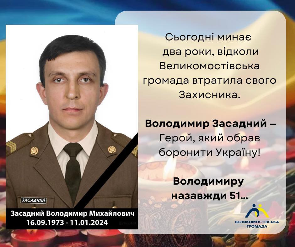 Сьогодні минає два роки від дня, коли наша громада втратила свого Захисника — Володимира Засадного, людину великого серця, щирої душі та незламної любові до України.