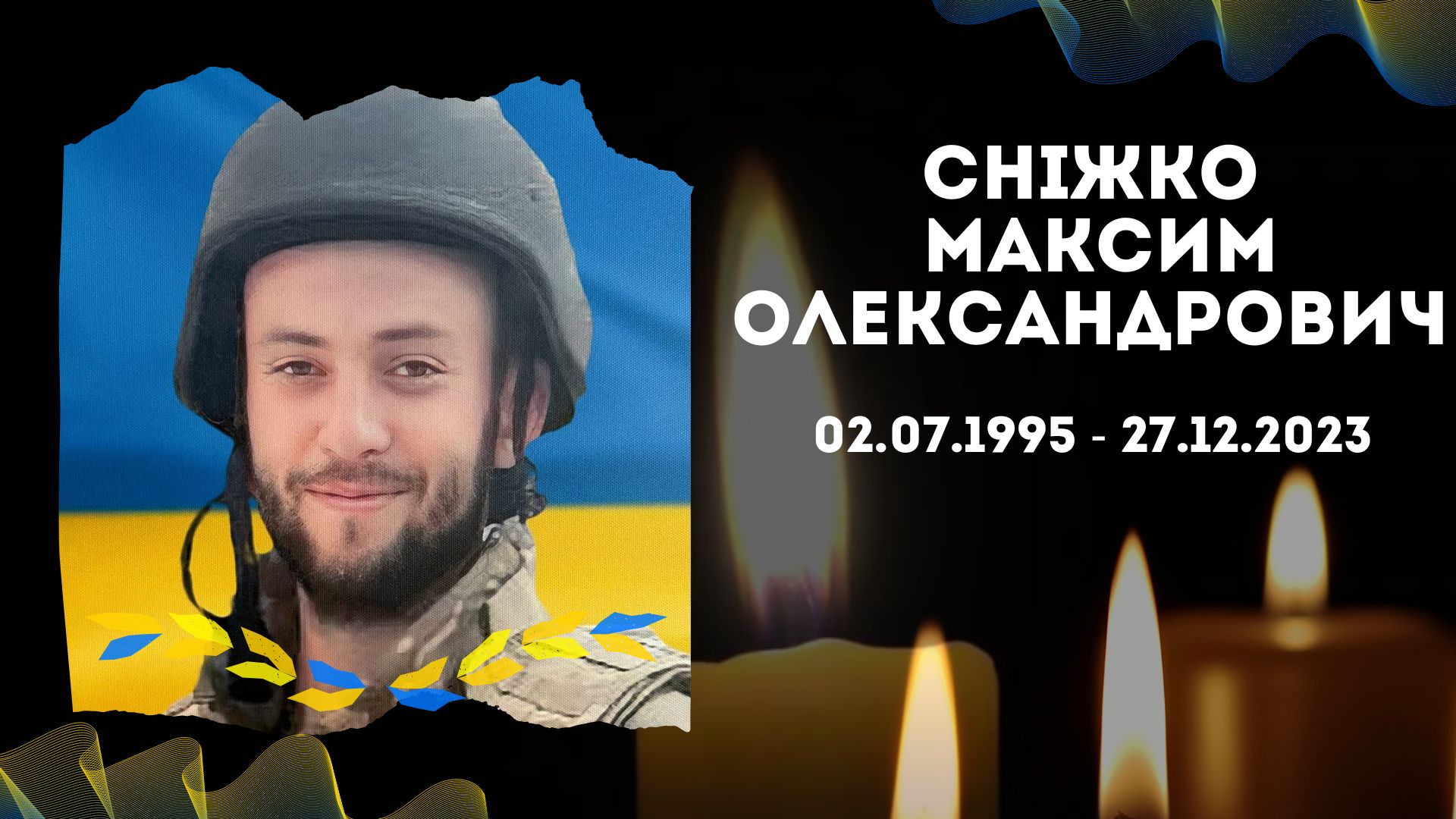 Сьогодні, минає друга річниця з дня загибелі Героя України, воїна Сніжка Максима Олександровича (02.07.1995 р. н. – загинув 27.12.2023)