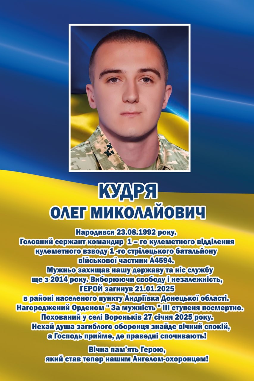 Сьогодні минає рік болю і тиші з того дня, як зупинилося серце Героя, Захисника України — Кудрі Олега Миколайовича. День, який назавжди залишив глибокий слід у серцях його рідних, побратимів і всієї громади. Час минає, але біль втрати не слабшає, він лише набуває іншої, тихої й важкої форми — пам’яті.