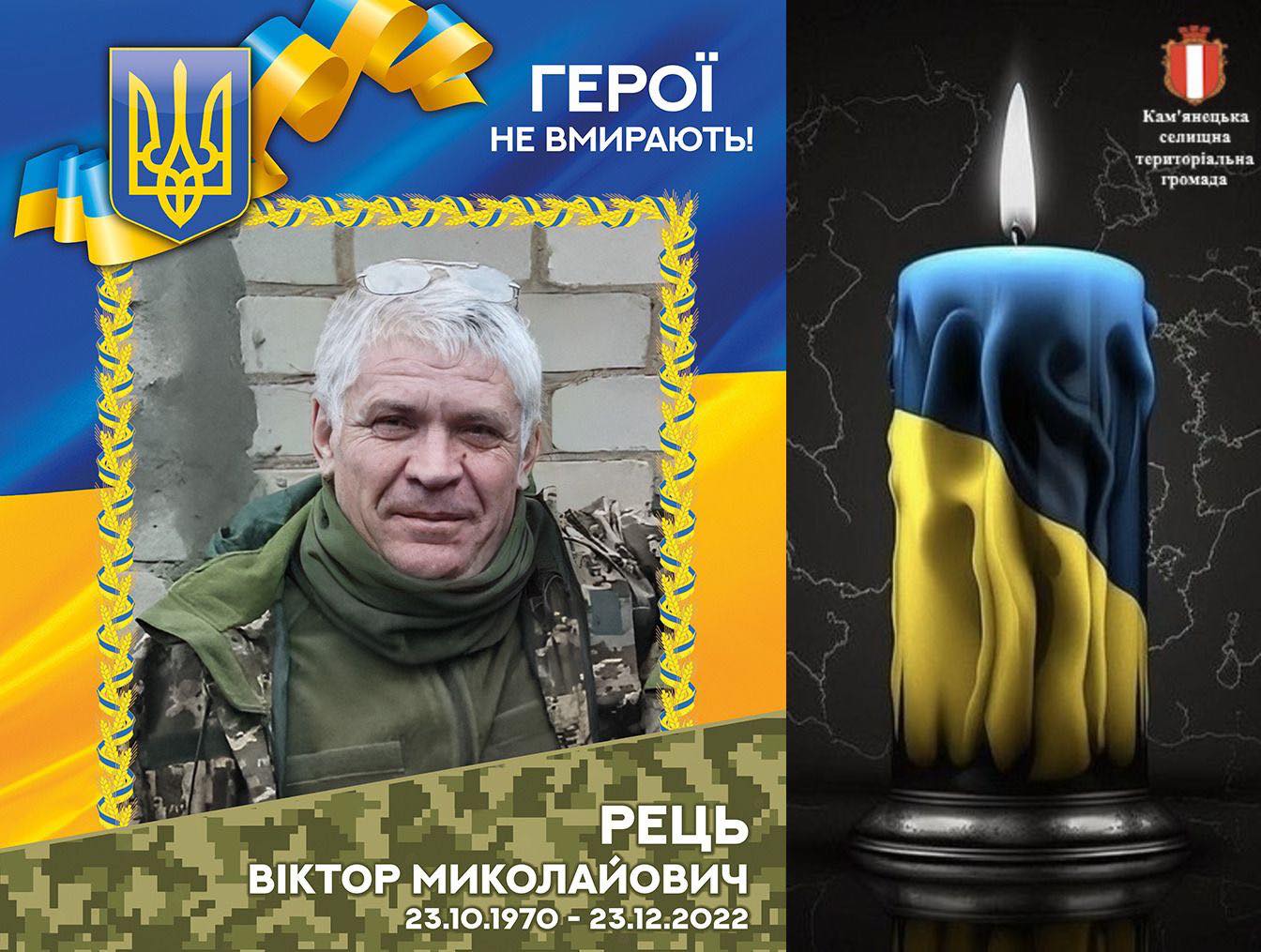 07 листопада 2022 року був призваний по мобілізації на захист Батьківщини, а 23 грудня 2022 року солдат Рець Віктор Миколайович загинув в боях поблизу Бахмута на Донеччині. Поховали Героя 31 грудня 2022 року зі всіма військовими почестями в Петрокорбівці – на його малій батьківщині