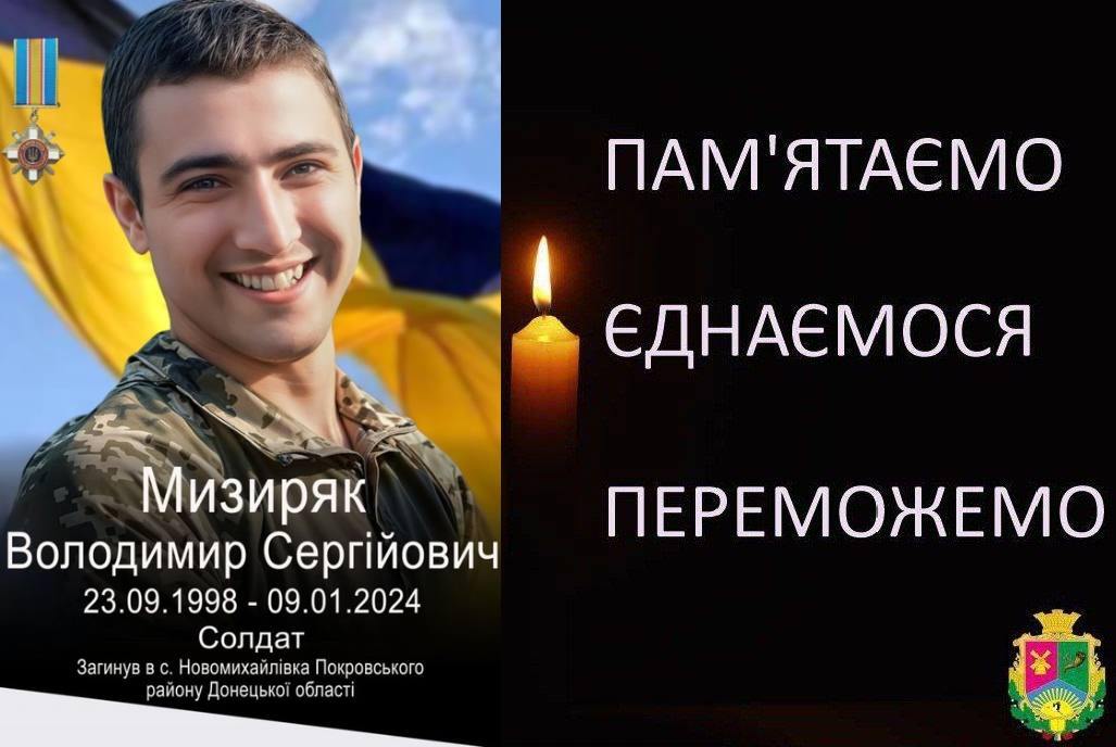 🕯️Сьогодні ми зі скорботою та глибоким сумом вшановуємо пам’ять нашого земляка — Мизиряка Володимира Сергійовича.