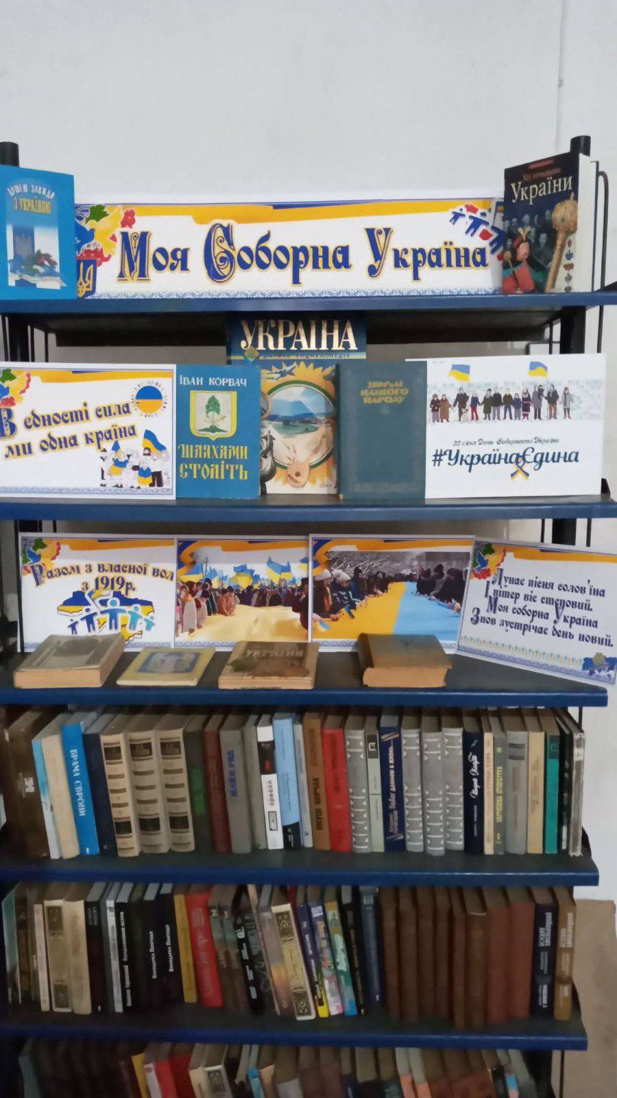 З нагоди Дня Соборності в читальних залах бібліотек громади створені книжкові виставки.