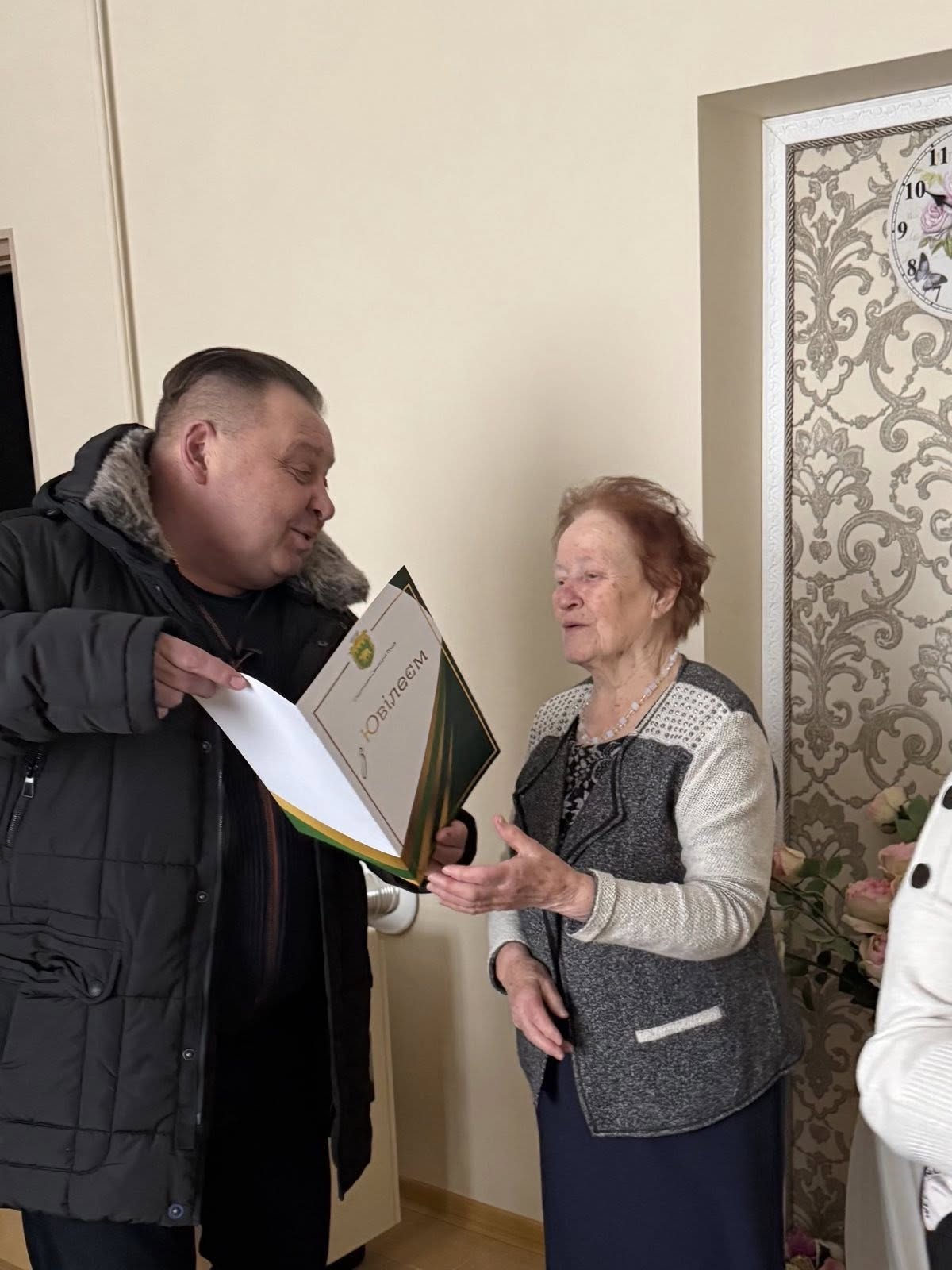🎁З нагоди ювілею з подарунками та щирими вітаннями до іменинниці завітали селищний голова Іван Піляк та директорка КУ «Центр надання соціальних послуг Східницької селищної ради» Ірина Ігнацевич.