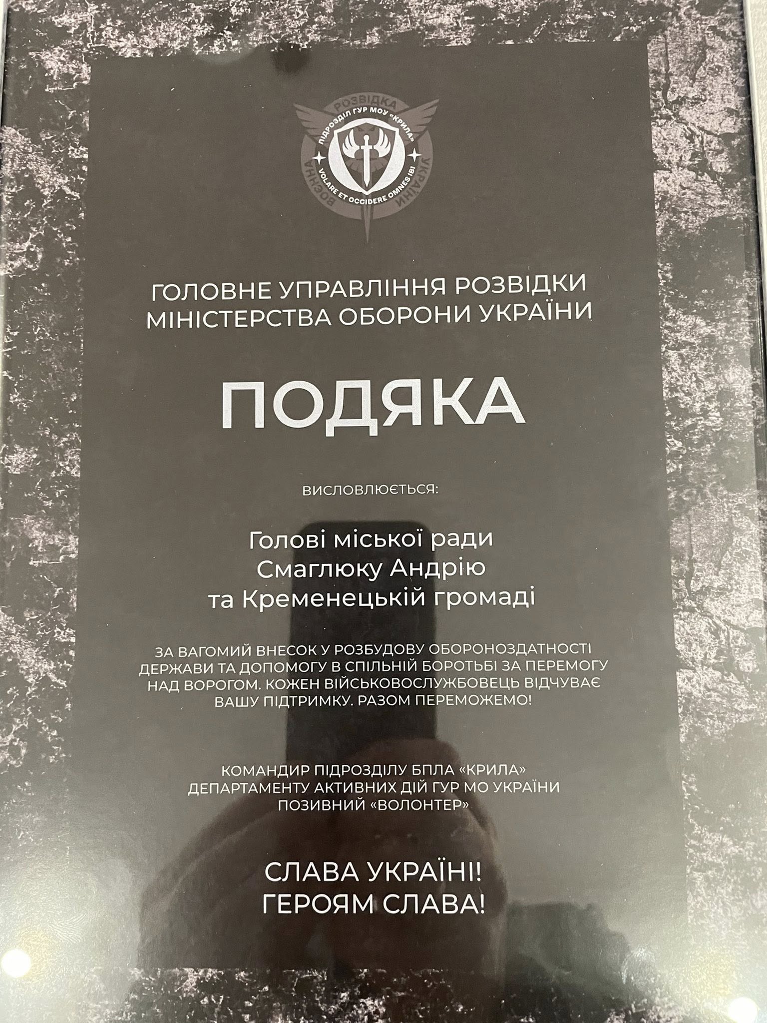 Сьогодні отримав подяку для нашої громади від Головного управління розвідки Міністерства оборони України.