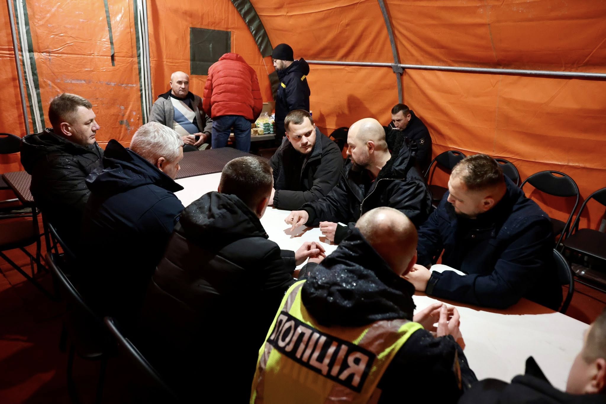 Сьогодні перевірив роботу одного з пунктів обігріву та допомоги водіям, розгорнутого на автодорозі М-05 у Фастівському районі. Пункт забезпечений усім необхідним: працює генератор — є тепло, гарячі напої та можливість безпечно перечекати негоду й отримати допомогу й інформацію.