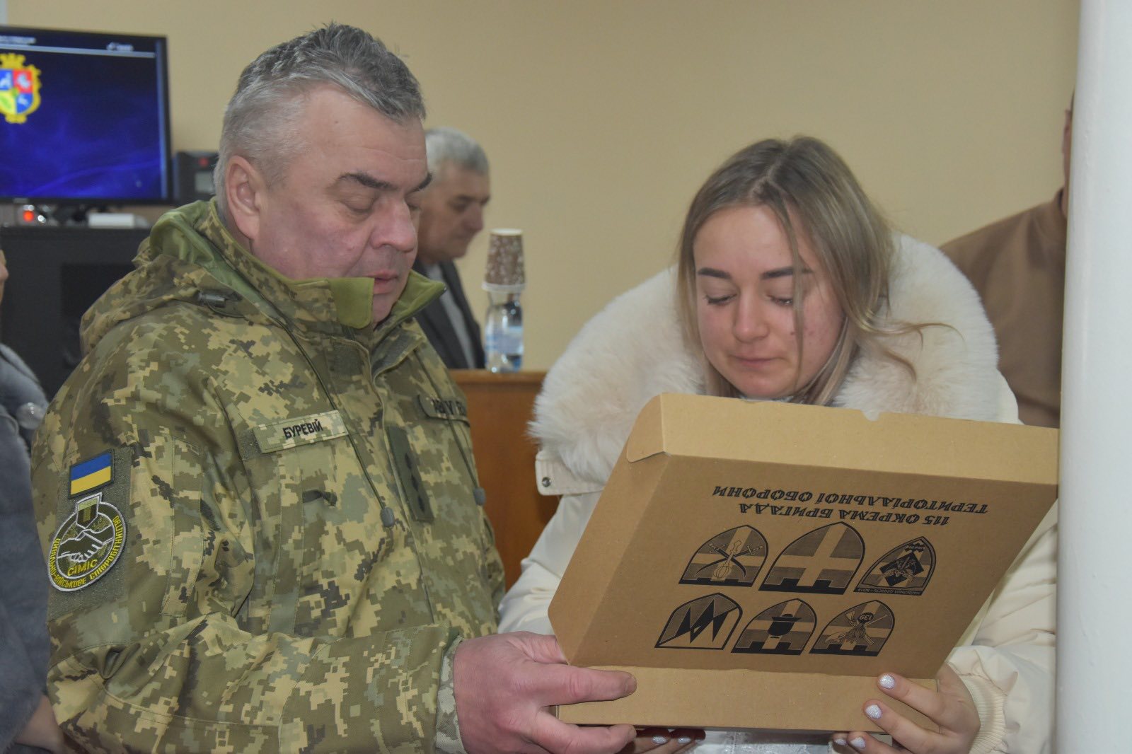 Далі нагрудні знаки 115-ї окремої бригади територіальної оборони (посмертно) вручили родинам: