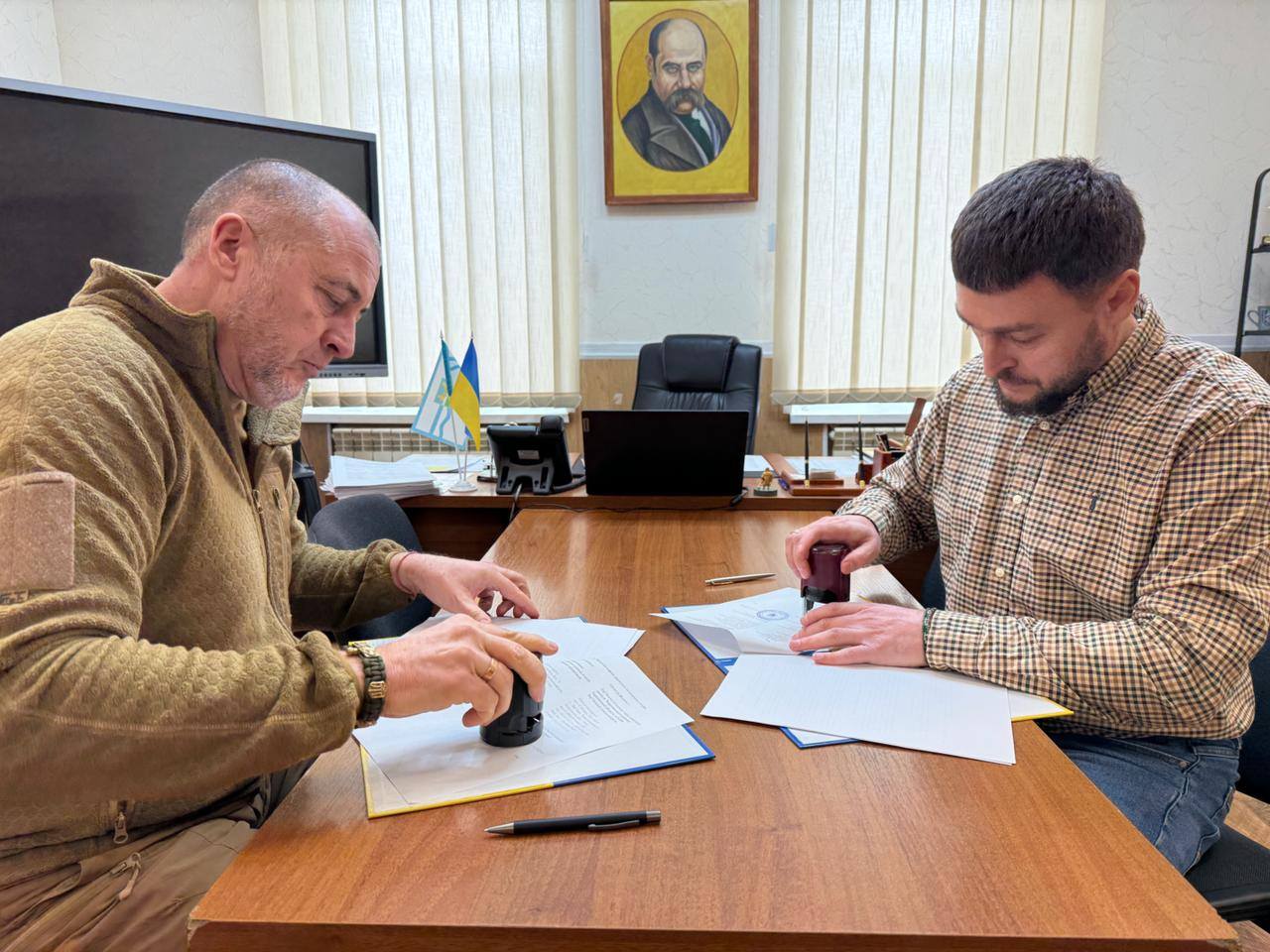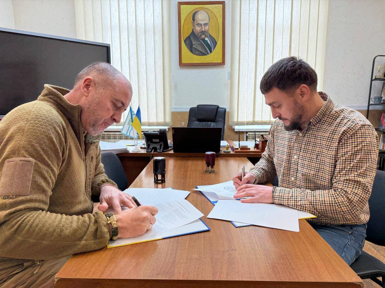 Сьогодні разом із начальником Дарʼївської сільської військової адміністрації Анатолієм Дідуром підписали Меморандум про співробітництво між Снігурівською міською територіальною громадою та Дарʼївською сільською територіальною громадою в межах національного проєкту «Пліч-о-пліч: згуртовані громади».