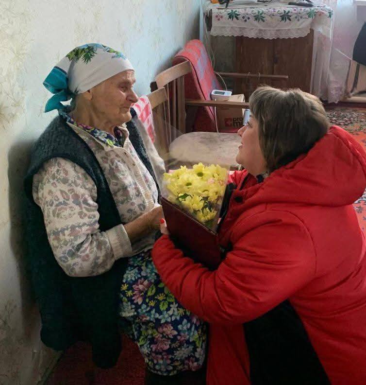 З нагоди такої знакової події до святкової оселі з подарунками та квітами завітали сільський голова Ольга Гаркавенко, начальник відділу -ЦНАП Лідія Соловйова та начальник відділу соціального захисту населення Раїса Косогорова.