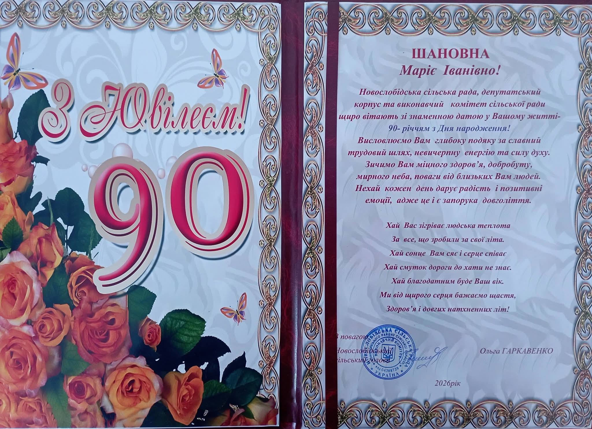 🌹 Бажаємо Марії Іванівні міцного здоров’я та бадьорості духу на довгі літа; душевного спокою та родинного тепла; мирного неба над головою та добробуту у Вашій оселі; щоденної уваги та турботи від дітей, онуків і правнуків.🎉