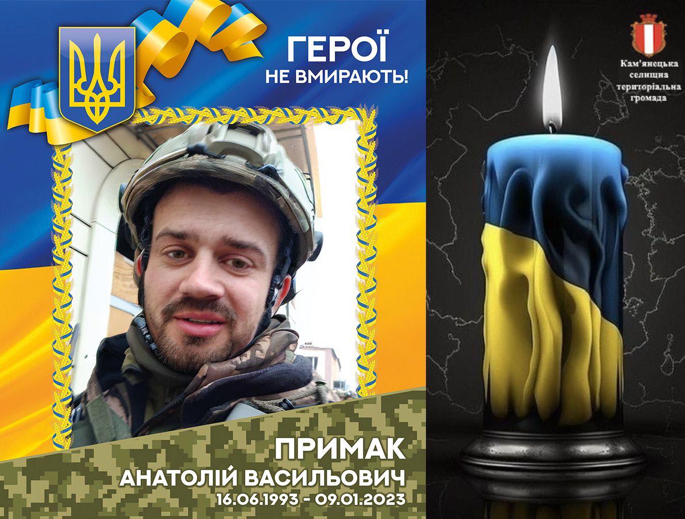 В ніч на 9 січня 2023 року під час стрілецького бою з ворогом на околицях Бахмута Анатолій Васильович отримав смертельні поранення. Внаслідок героїчних та самовідданих дій солдата Примака Анатолія Васильовича було відбито атаку противника та утримано займані позиції.