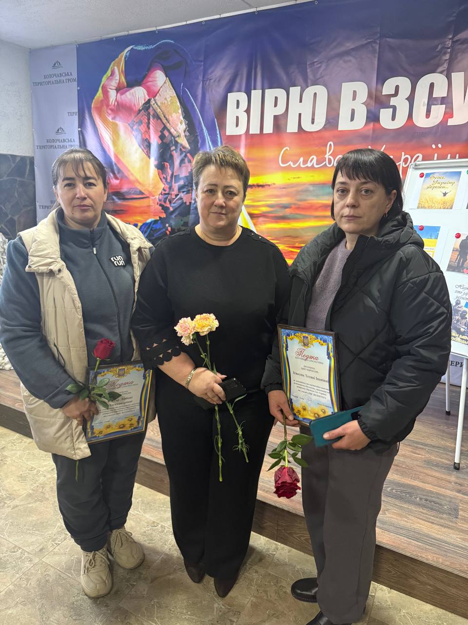 «Ваш подвиг, ваша небайдужість — це те, що тримає Україну. Ми безмежно вдячні кожному з вас», — наголосила Тетяна Михайлівна. Вона також вручила подяки жінкам-волонтеркам – Тетяні Ігнатюк та Любов Ситар — тим, хто без вагань віддає свій час, сили й турботу, щоб допомогати нашим військовим. Це жінки великого серця, які щодня своєю невтомною працею готують домашні страви для воїнів на передовій.