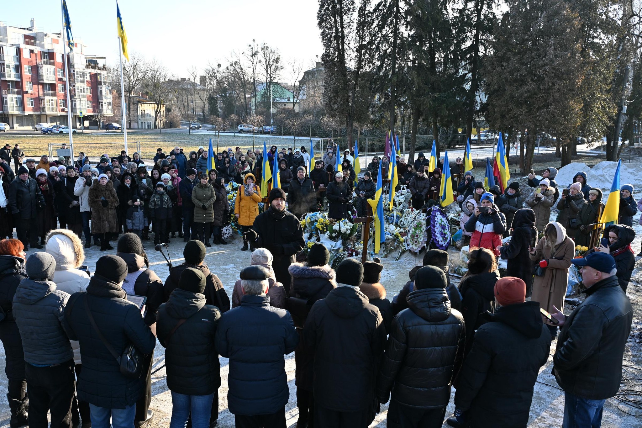 Скорботна коляда пролунала на Личаківському цвинтарі — на полях почесних поховань №76, №67, №86а та №87 (вул. Пасічна). Попереду — Голосківський цвинтар.