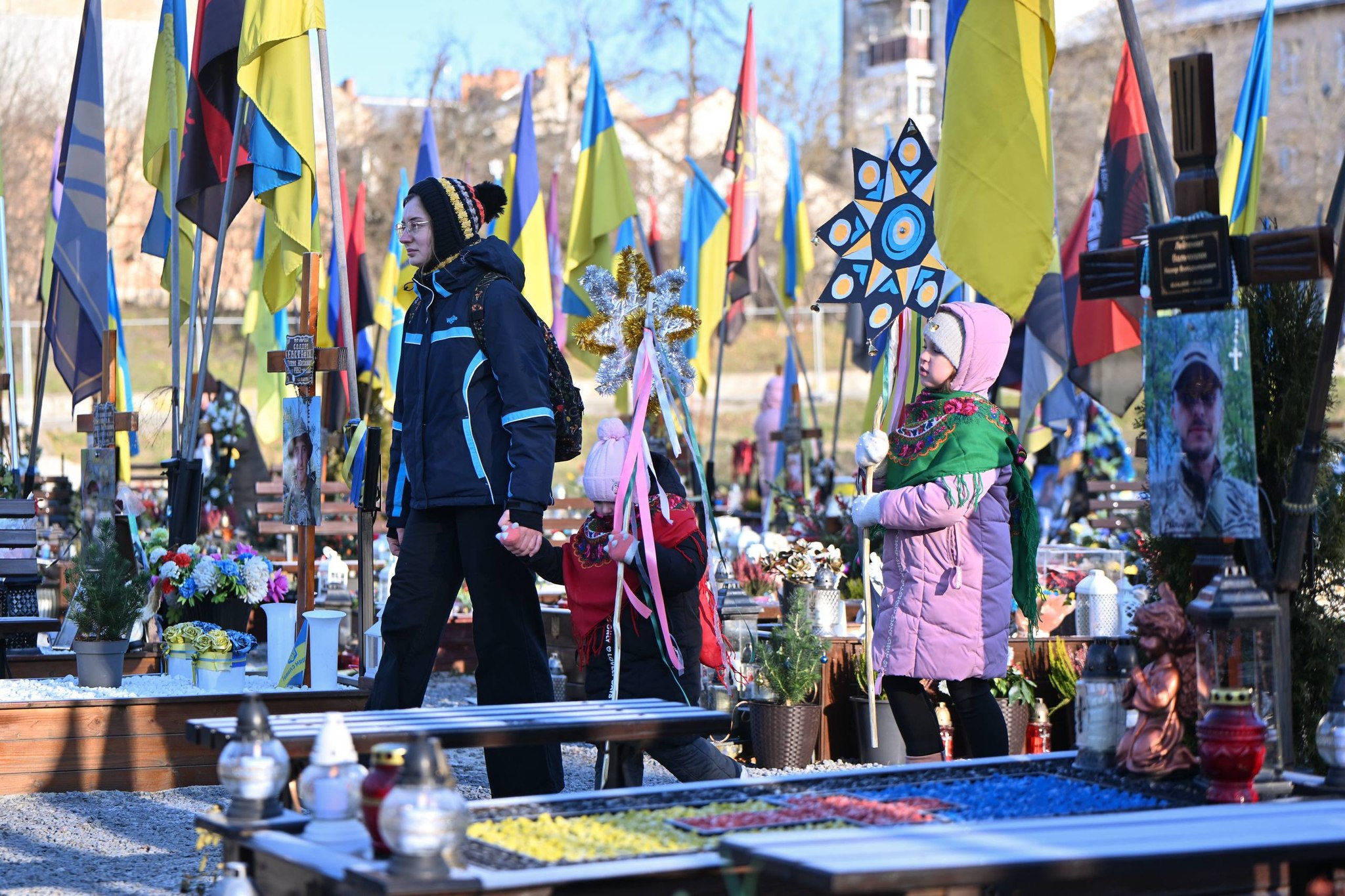 Сьогодні у Львові муніципальний Хор ГОМІН провів Скорботну коляду на полях почесних поховань, де спочивають Захисники і Захисниці України, які вже не зможуть святкувати це свято разом із нами.