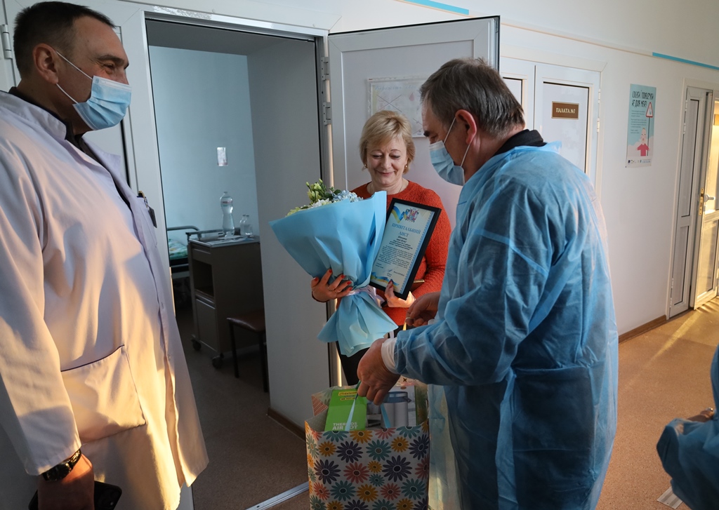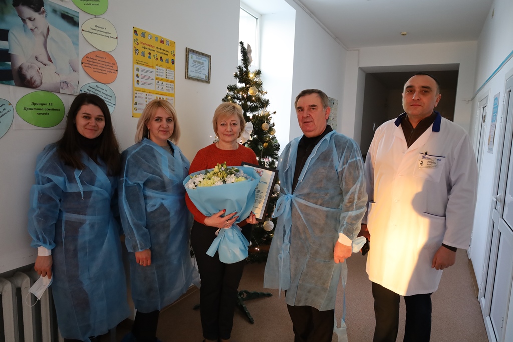 Міський голова Микола Боровець, заступник медичного директора КНП «Звягельська багатопрофільна лікарня» Звягельської міської ради Костянтин Шнайдер, начальник управління у справах сім’ї, молоді, фізичної культури та спорту Тетяна Кравчук, головний спеціаліст управління Оксана Кочубей відвідали пологове відділення та привітали маму новонародженого Юлію Ткачук та його бабусю.