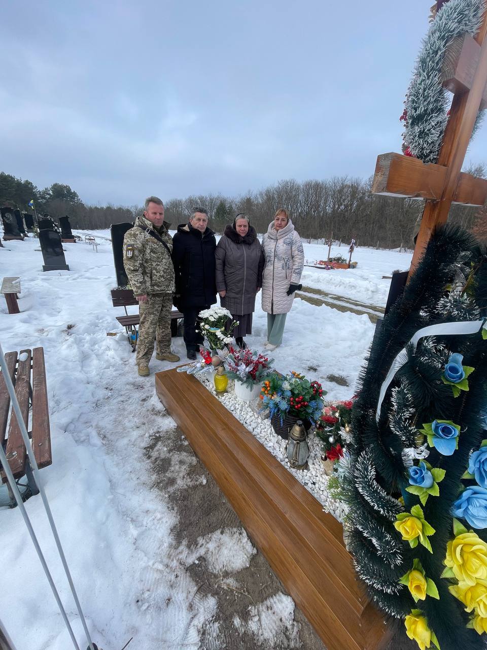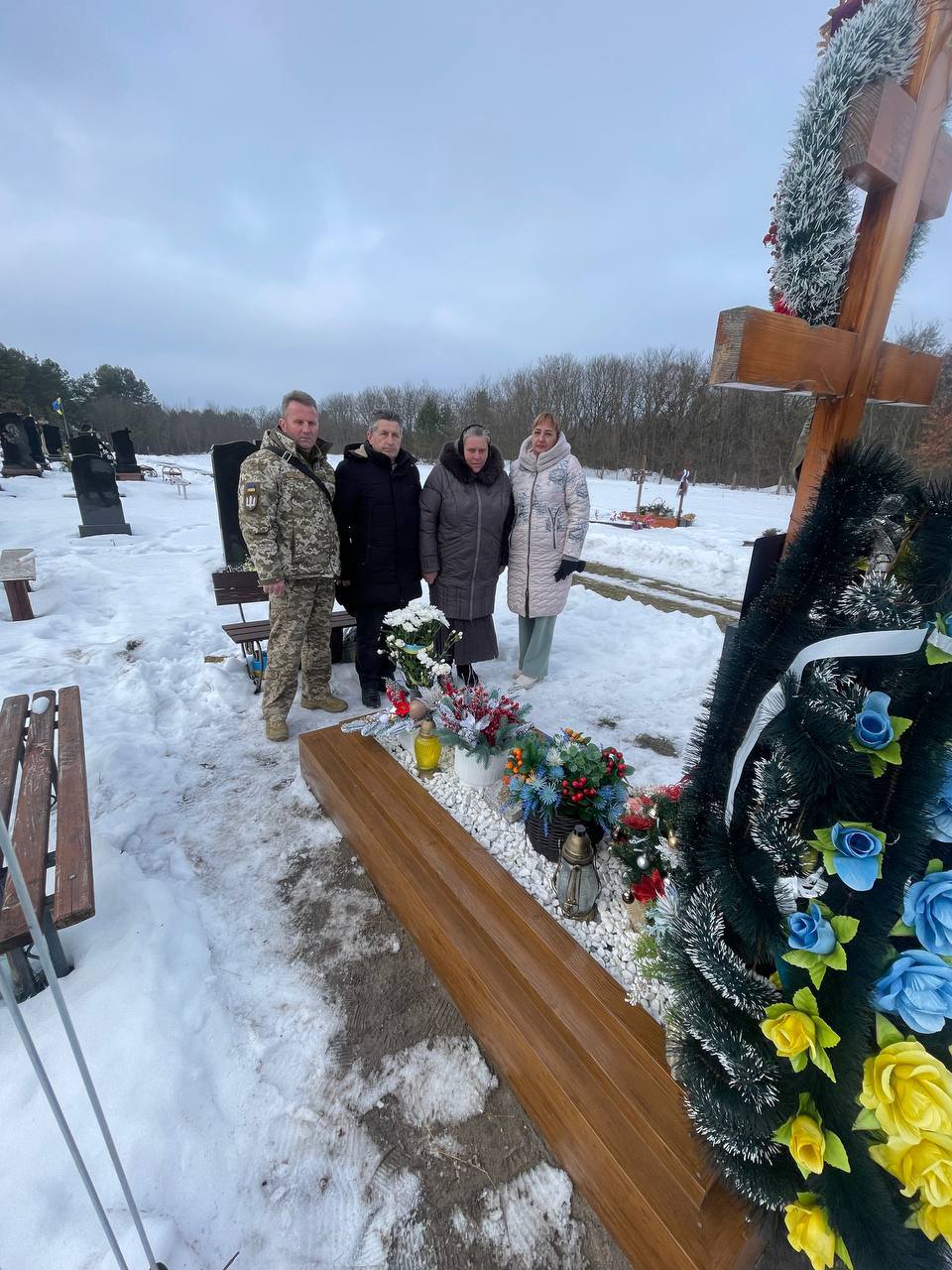 🙏🇺🇦До вшанування пам’яті долучились рідні полеглого воїна, працівники Другого відділу Дубенського РТЦК та СП спільно зі старостою села Богуславом Чорнобаєм.