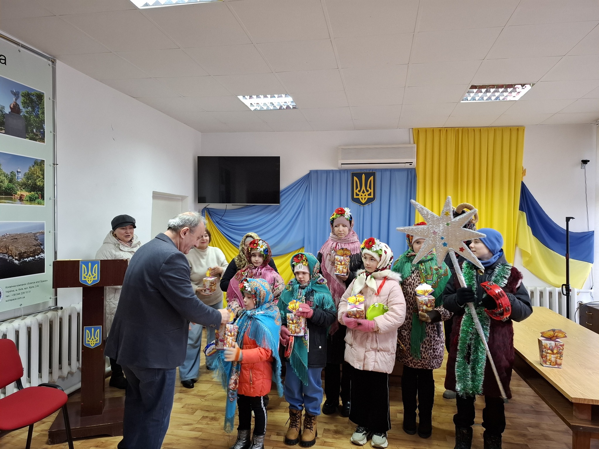 Міський голова Матвій ІВАНОВ пригостив солодощами маленьких гостей та подякував за радість, світло й нагадування про важливість українських традицій, які об’єднують та надихають навіть у непрості часи.