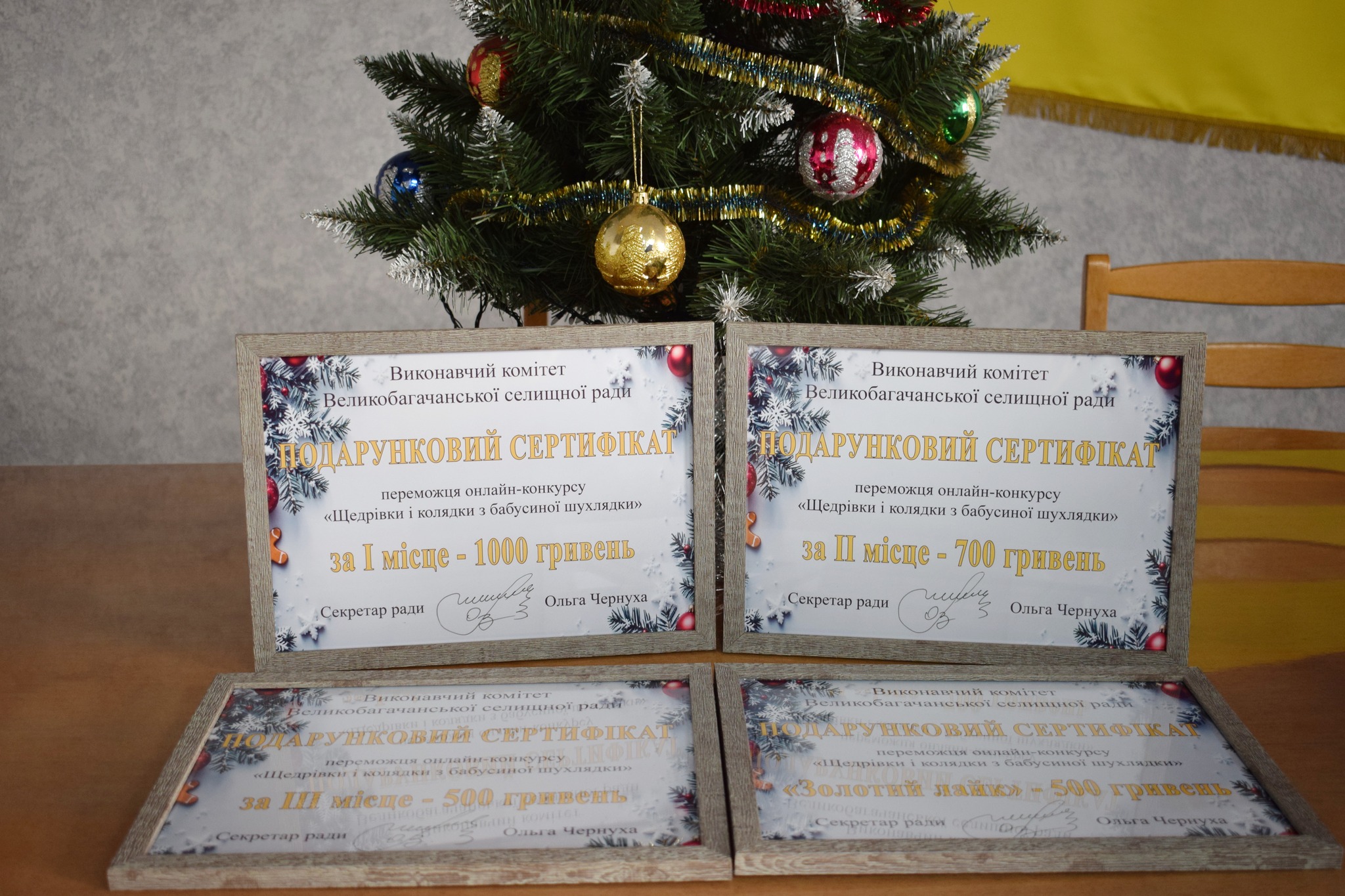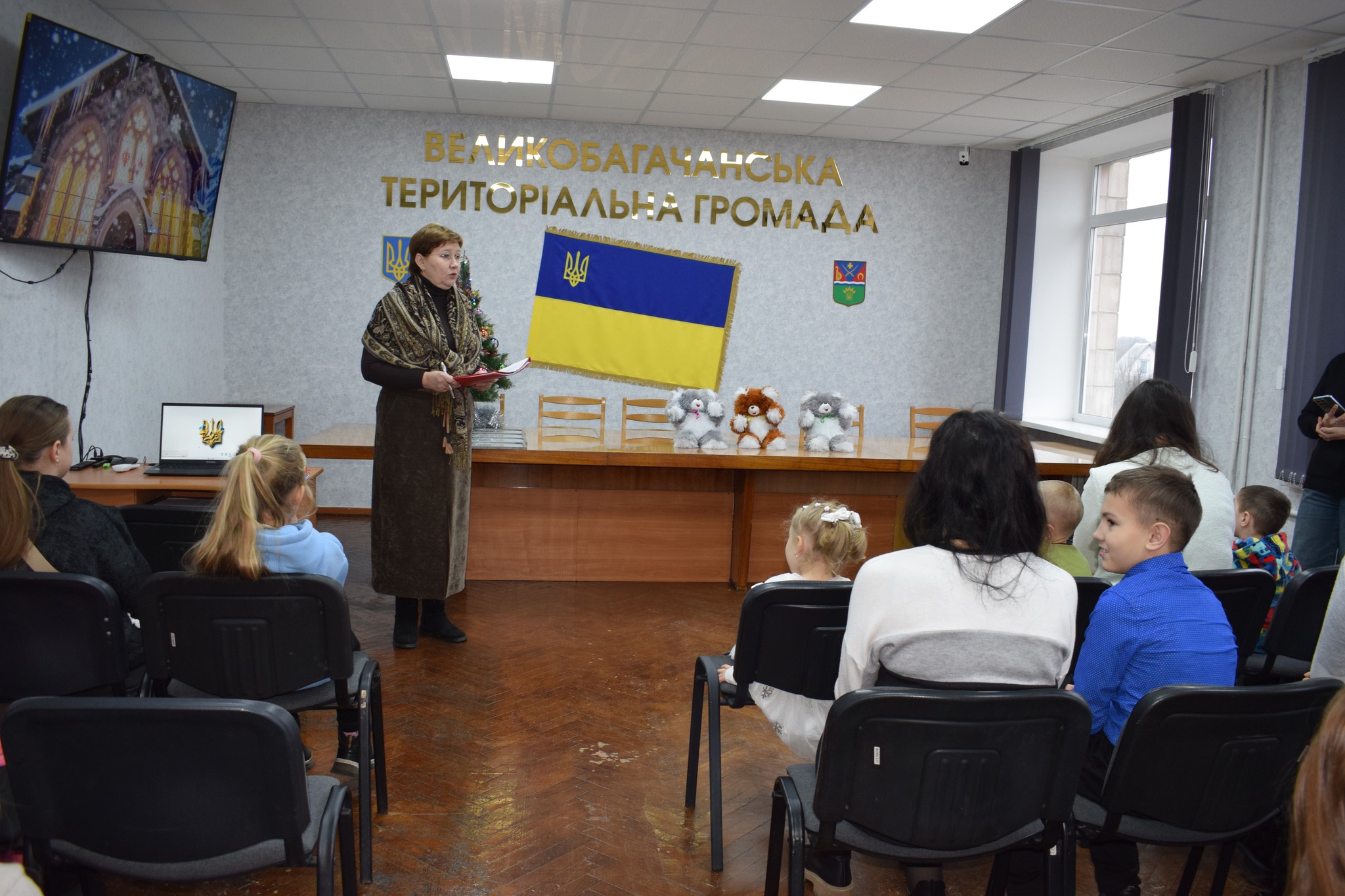 Ольга Василівна вручила сертифікати та подарунки і побажала всім мирного року, здійснення мрій та сподівань, а учасникам конкурсу і всім дітям громади та України – мирного щасливого дитинства.