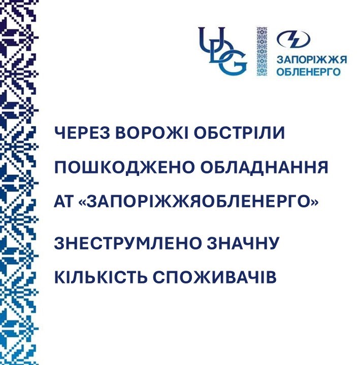 Сьогодні через обстріл окупаційних військ рф пошкоджень зазнало обладнання АТ «Запоріжжяобленерго».