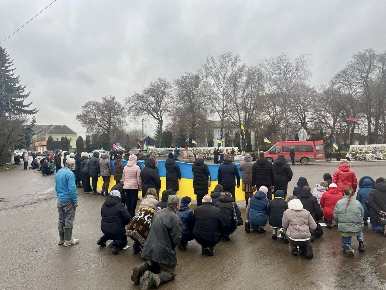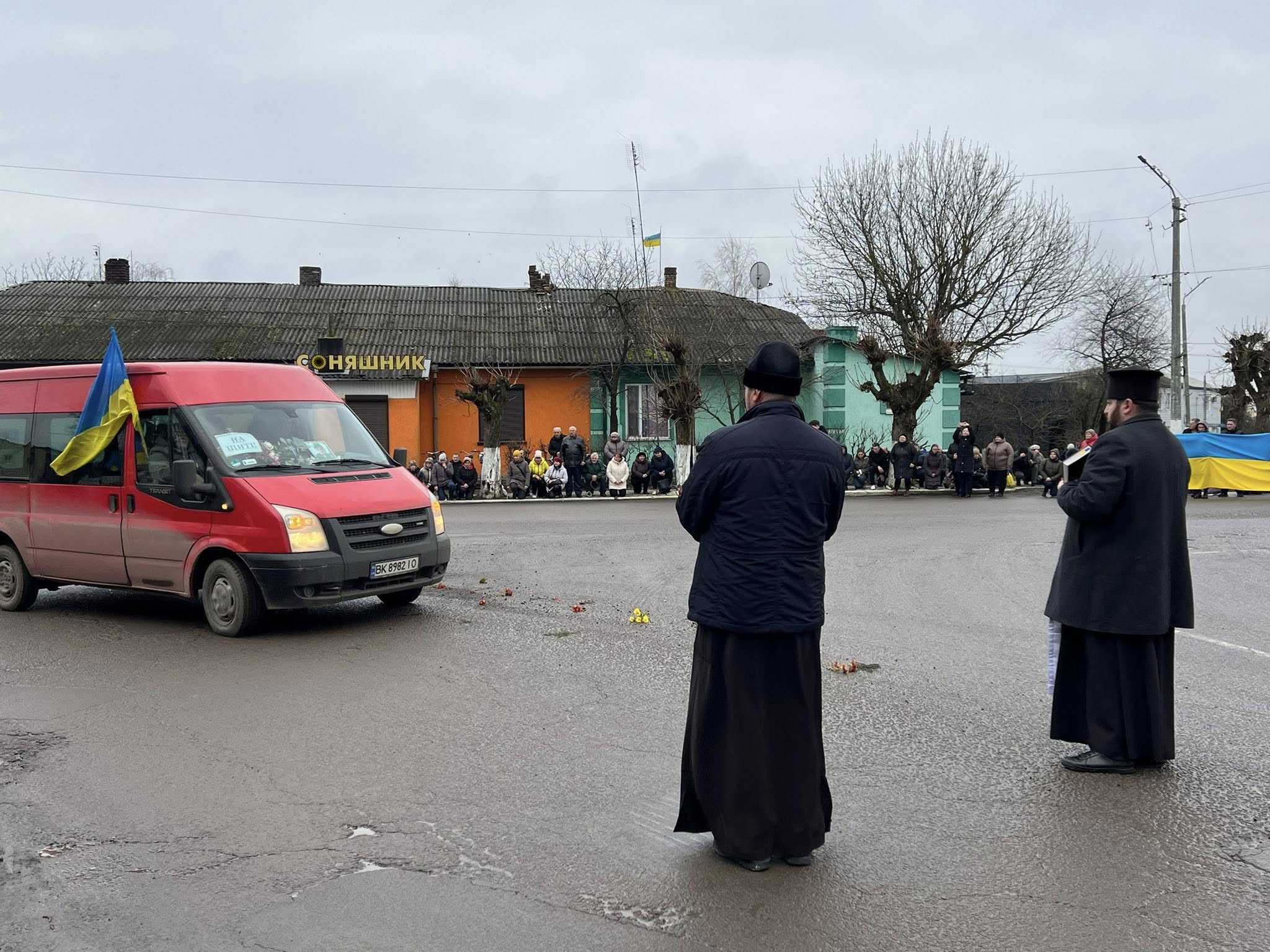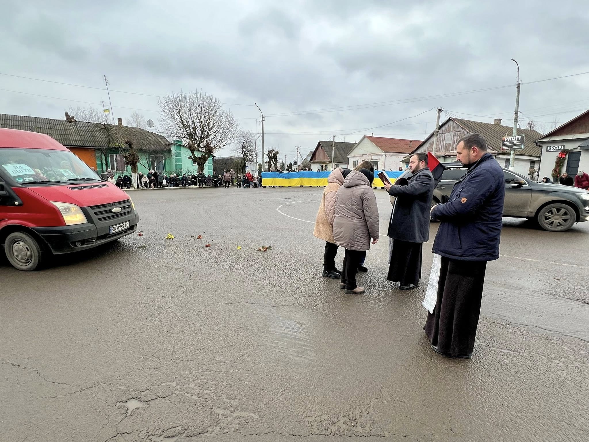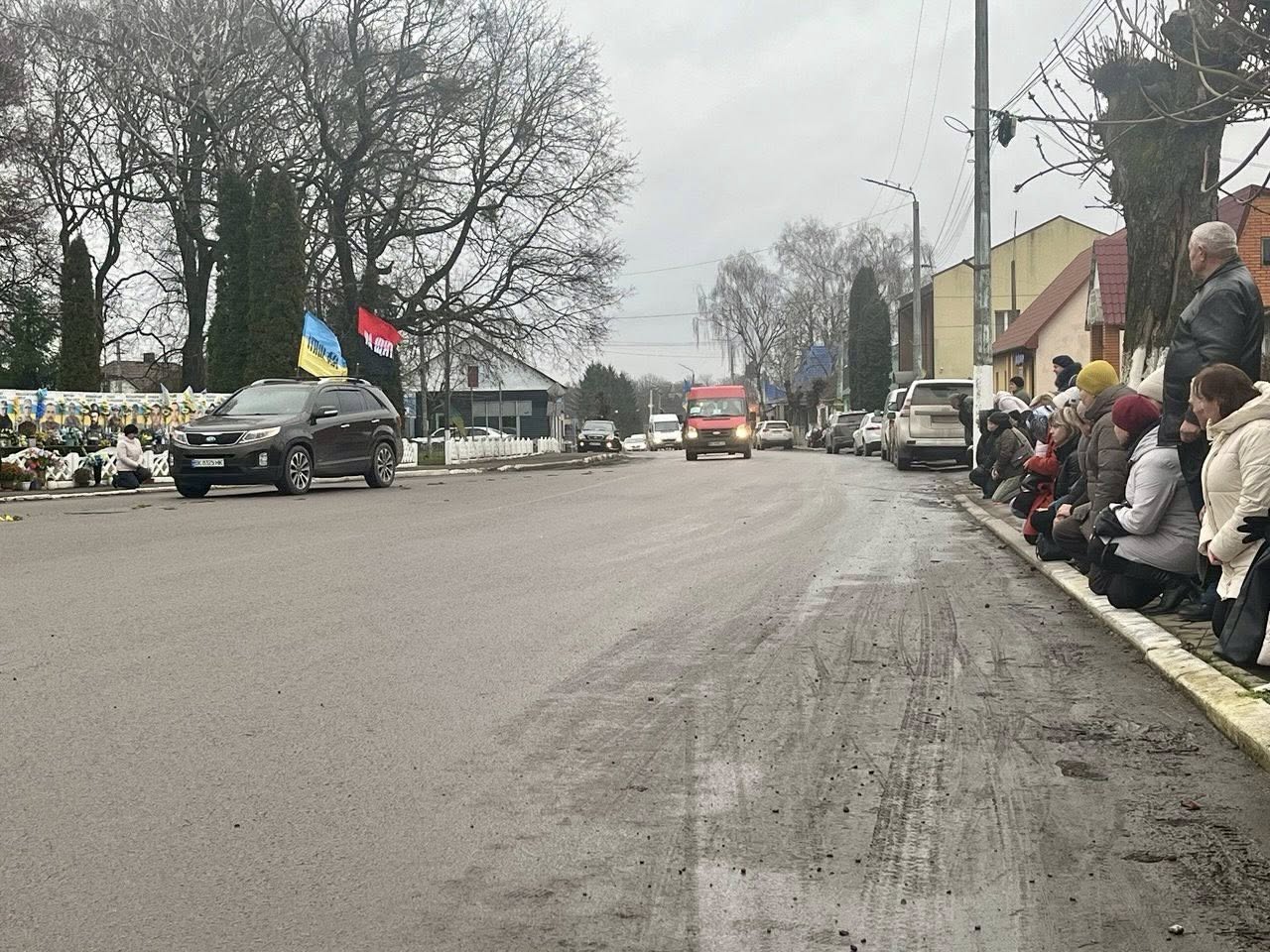 Мешканці Демидівської громади вийшли на узбіччя дороги, щоб гідно провести воїна в останню путь. Схилившись на коліна, вони утворили живий коридор пам’яті — у знак глибокої вдячності, поваги та скорботи за полеглим Героєм.