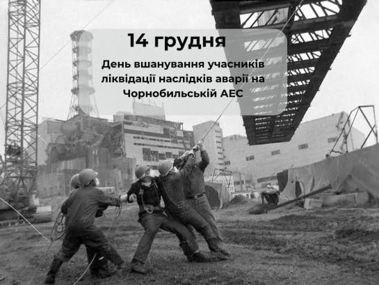 Сьогодні, 14 грудня, ми вшановуємо учасників ліквідації аварії на Чорнобильській…