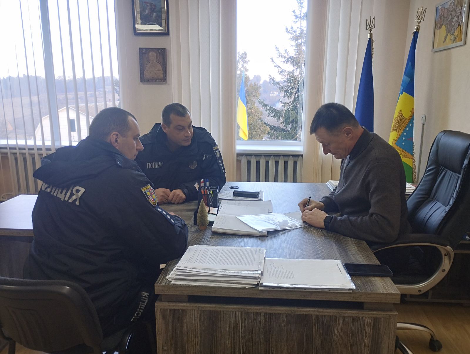 Сьогодні, 18 грудня 2025 року поліцейські офіцери Северинівської сільської територіальної громади Іван Карась та Олександр Клепас провели робочу зустріч з головою громади Василем Малярчуком, на якій було обговорено питання співпраці, щодо безпекових проєктів біля закладів освіти, які б відповідали потребам громади, залучивши всі можливі ресурси для реалізації комплексних рішень. Під час зустрічі було визначено проблемні питання та шляхи їх вирішення, на основі яких буде проводитися подальша робота в даному напрямку, а також перелік навчальних закладів, які потребують підвищення уваги.