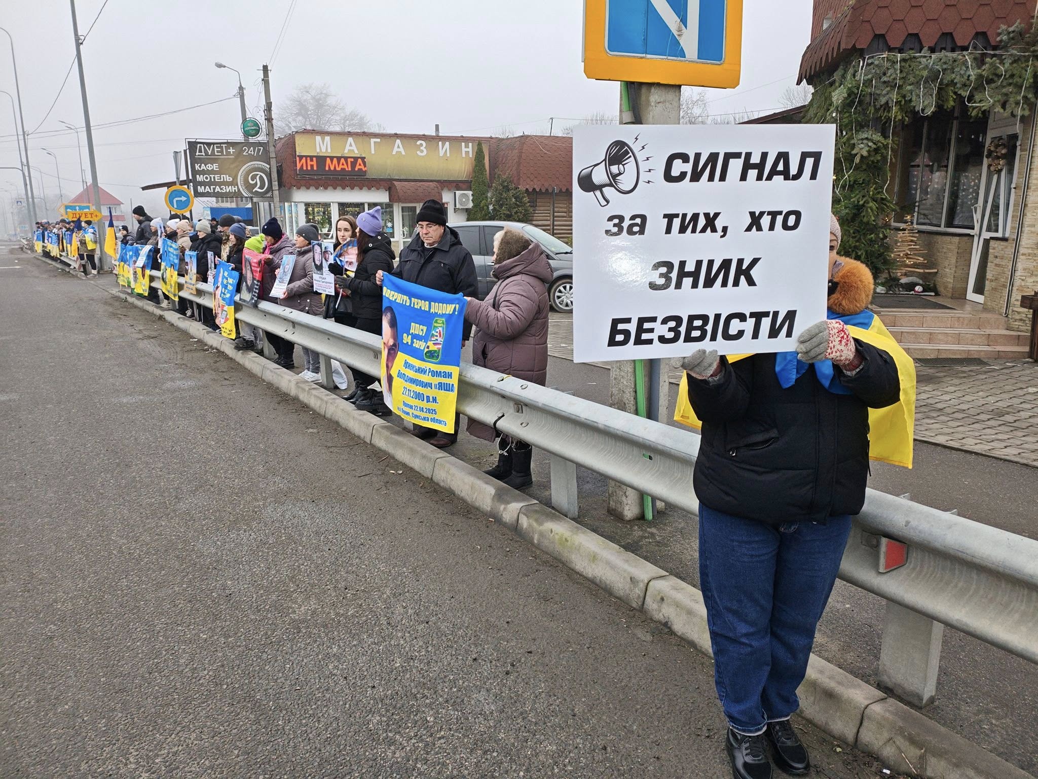 Сьогодні, 21 грудня, на узбіччі траси М30, біля кафе «Дует Плюс», відбулася передріздвяна акція підтримки зниклих безвісти Захисників та їхніх родин.