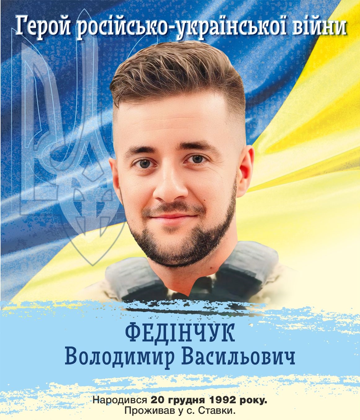 Сьогодні, 22 січня, друга річниця пам’яті нашого земляка, Федінчука Володимира Васильовича 1992 року народження, уродженця села Ставки. Ми вшановуємо пам’ять Героя, який віддав життя за Україну, згадуємо його подвиг та жертву. Це день скорботи та водночас день гордості за незламність духу українських воїнів.