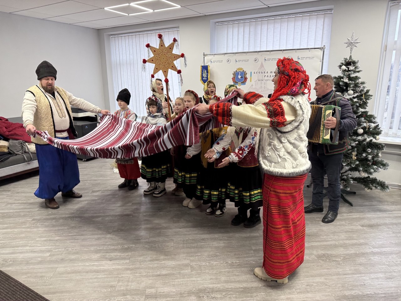 ✅ Сьогодні, 26 грудня, в адмінбудинку виконавчого комітету Буської міської ради з різдвяною театралізованою постановкою «Колядує душа у прославі Христа», створеною з яскравих фрагментів традиційної різдвяної обрядовості, виступили учасники Народного театрального колективу «Свічадо» Буського міського Народного дому (керівник — Оксана Шквір).