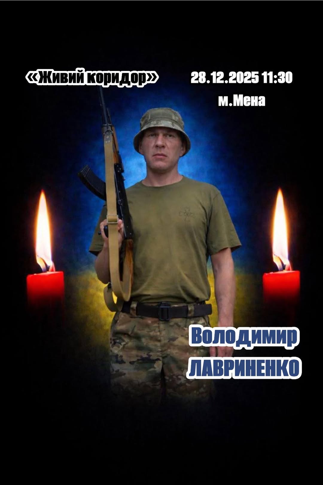 🧎🏻➡️🧎🏻♂️➡️🧎🏼♀️➡️Сьогодні, 28 грудня, об 11:30 Менська громада зустрічатиме «живим коридором» полеглого захисника Володимира Лавриненка.