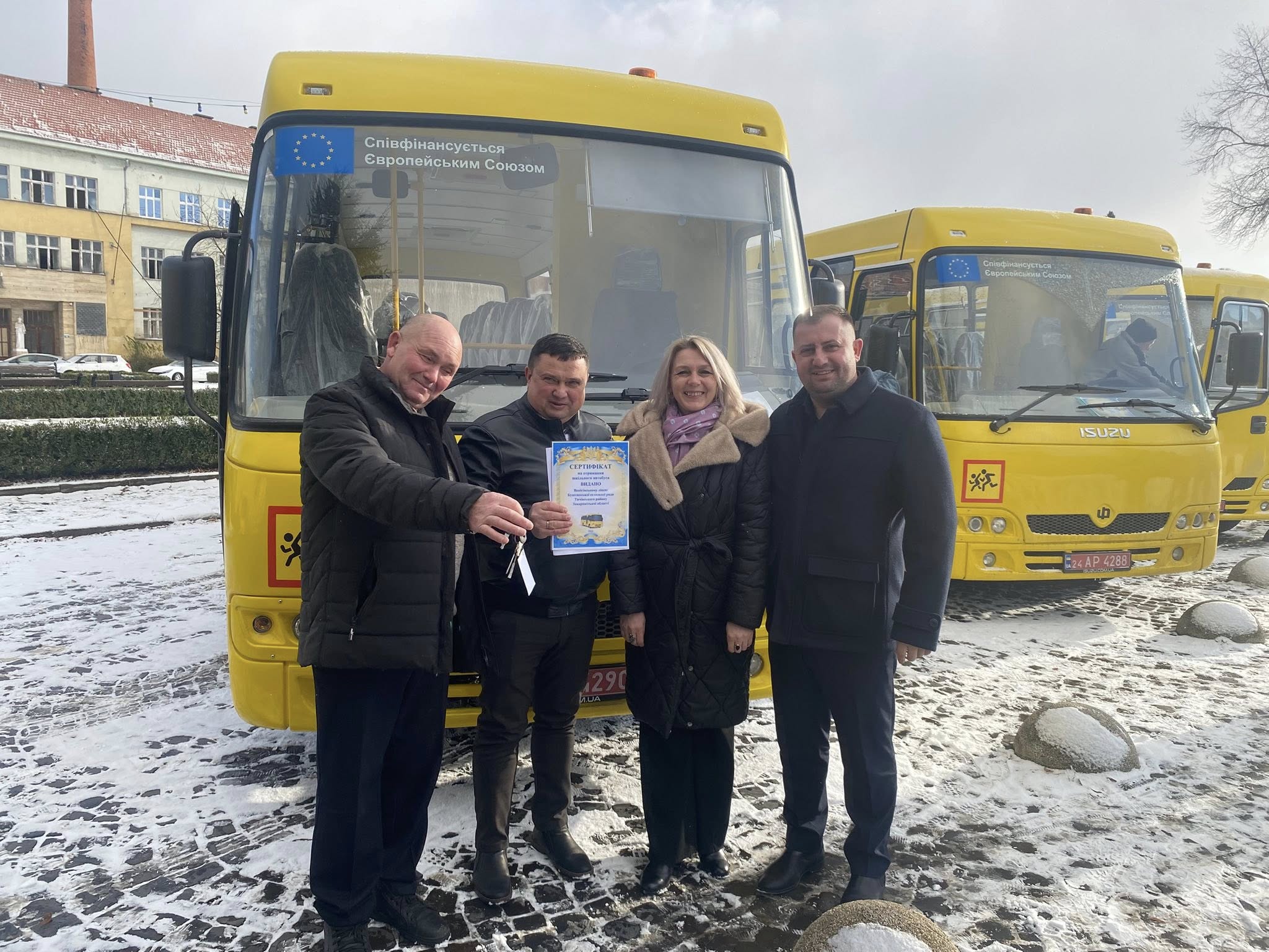 🗝️Ключі вручили голова Закарпатської обласної ради Роман Сарай, заступник голови Закарпатської ОДА-ОВА Юрій Гузинець та директор департаменту освіти, науки, молоді та спорту Марʼяна Марусинець.