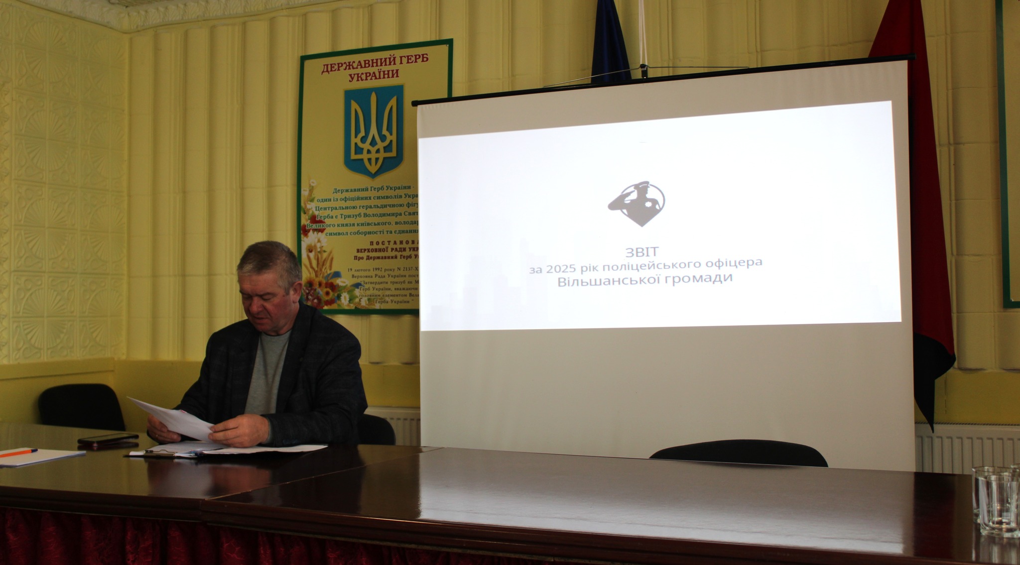👮Сьогодні, 30 січня, під час засідання виконавчого комітету Вільшанської сільської ради поліцейський офіцер громади Віталій Ришівський прозвітував про результати роботи у 2025 році.