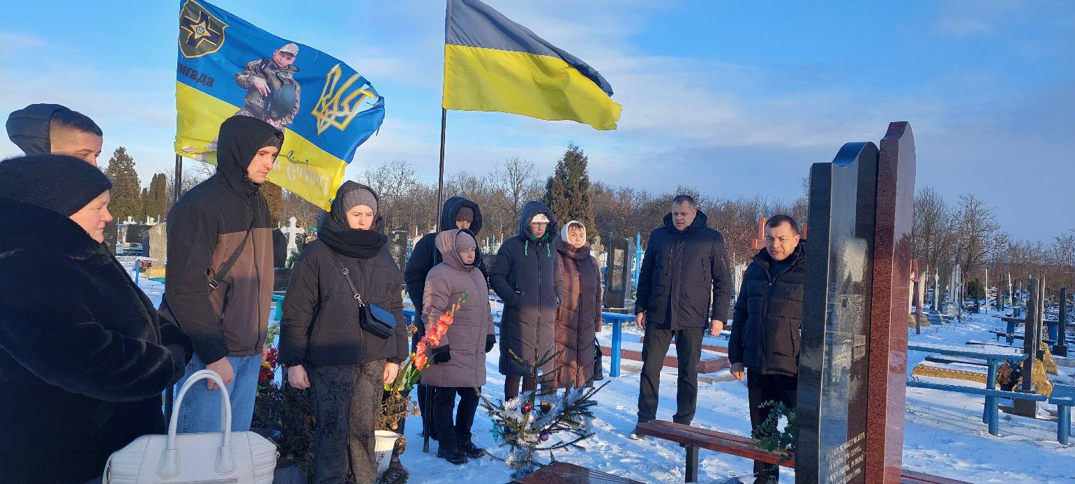 Представники Дашівської селищної ради разом із родиною Героя відвідали його могилу, вшанували пам’ять хвилиною мовчання та поклали квіти.