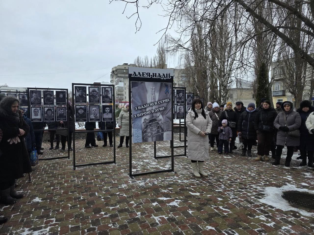 На Алеї Надії, яка реалізована завдяки співпраці Роменської міської ради та громадських організацій, розміщені фотографії наших Захисників, доля яких невідома… Кожне обличчя — це окрема історія, окрема надія…