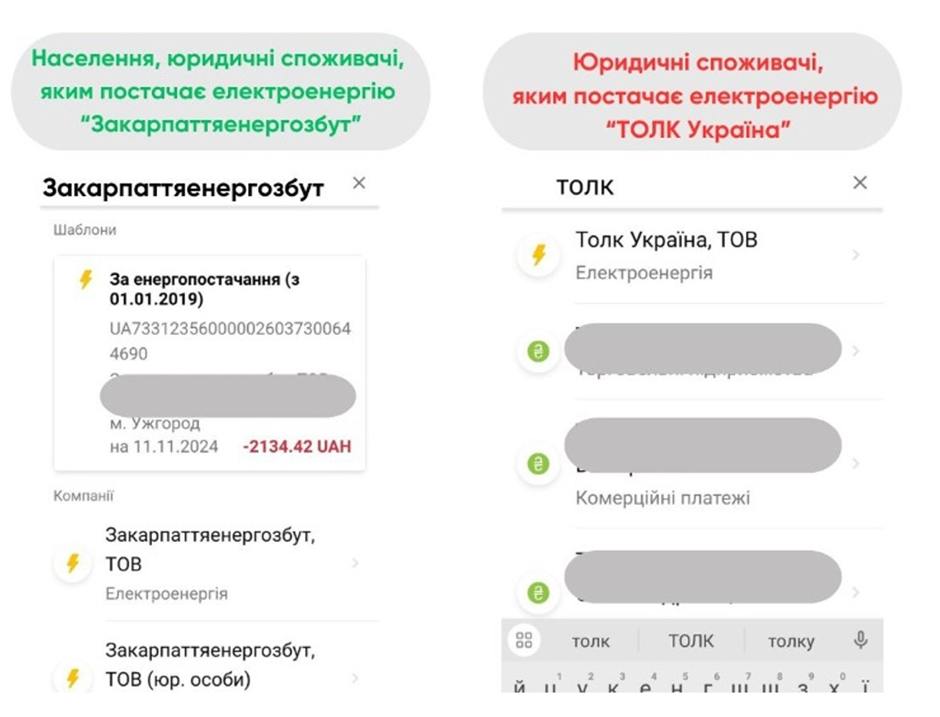 Саме тому населенню в пошуковику потрібно вводити слово «Закарпаттяенергозбут», а не «Толк», і сплачувати саме на рахунок «Закарпаттяенергозбут».