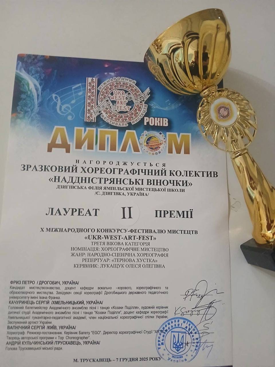 🌟 ТРІУМФ ЯМПІЛЬСЬКИХ ТАЛАНТІВ! «НАДДНІСТРЯНСЬКІ ВІНОЧКИ» ПІДКОРИЛИ МІЖНАРОДНИЙ КОНКУРС-ФЕСТИВАЛЬ МИСТЕЦТВ “UKR-WEST-ART-FEST” У ТРУСКАВЦІ!