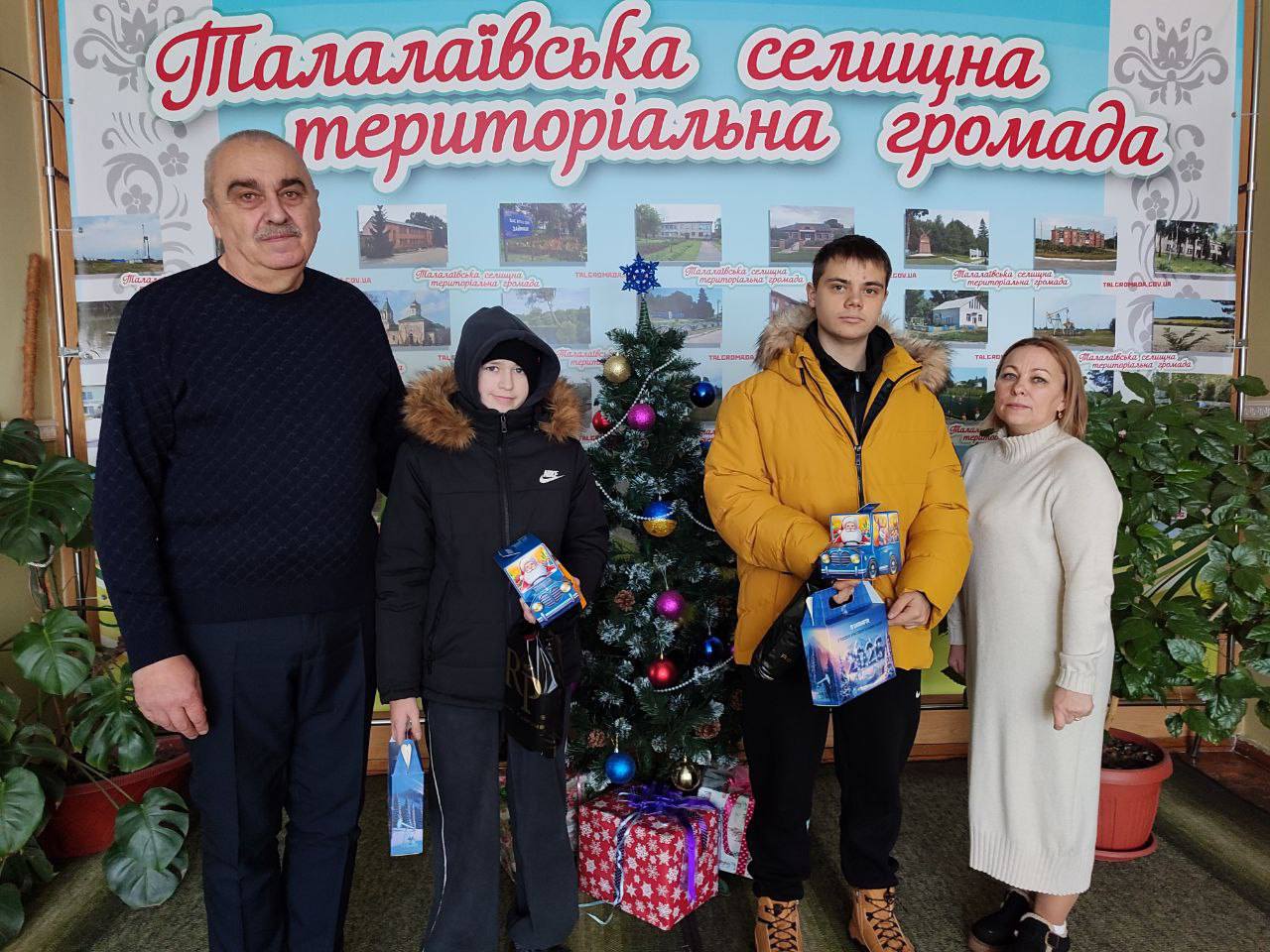 Напередодні Нового року з дітьми загиблих та зниклих безвісти захисників України, які проживають у нашій громаді, зустрілися селищний голова Юрій Величко та представниця громадської організації “Стремління до нового” Наталія Мудрік.