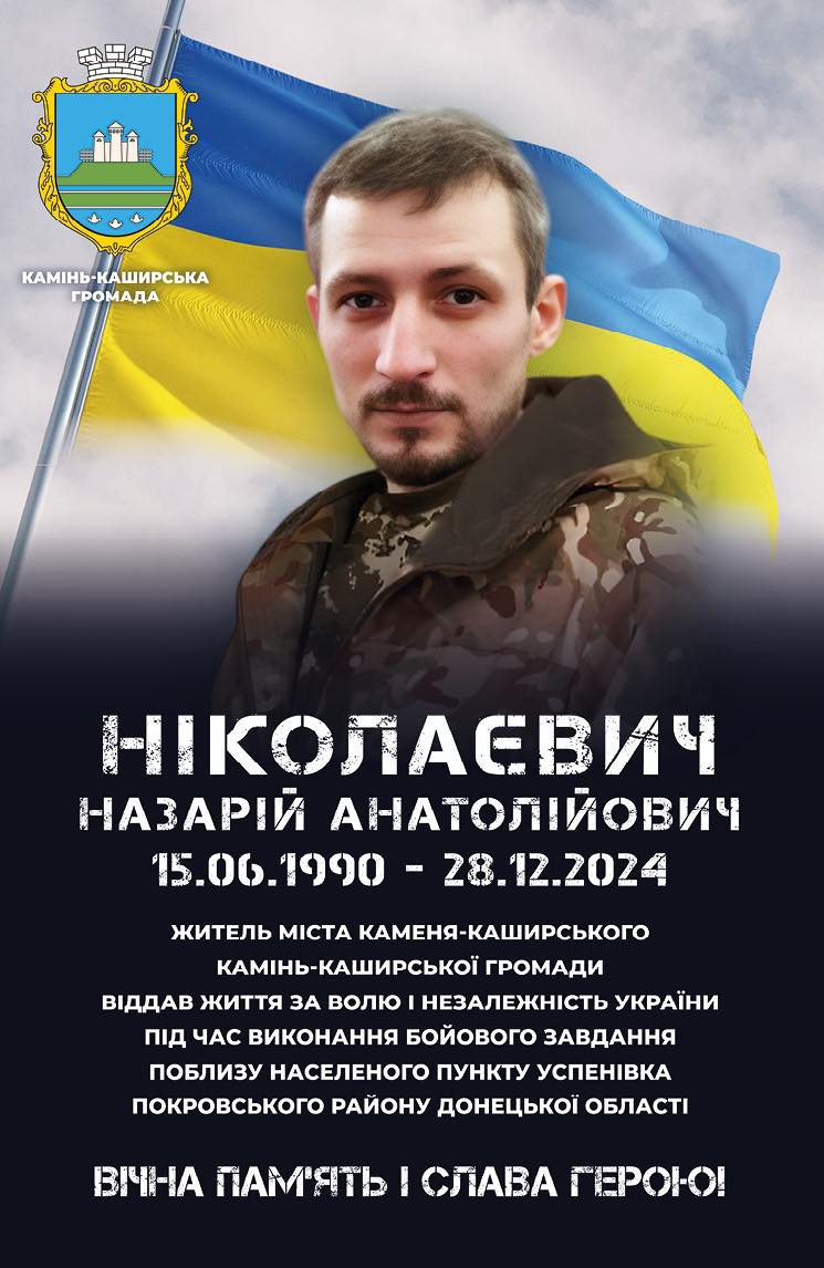 ▪️Минають роковини, як боронячи українську державу, загинув наш краянин, житель міста Каменя-Каширського – Ніколаєвич Назарій Анатолійович.
