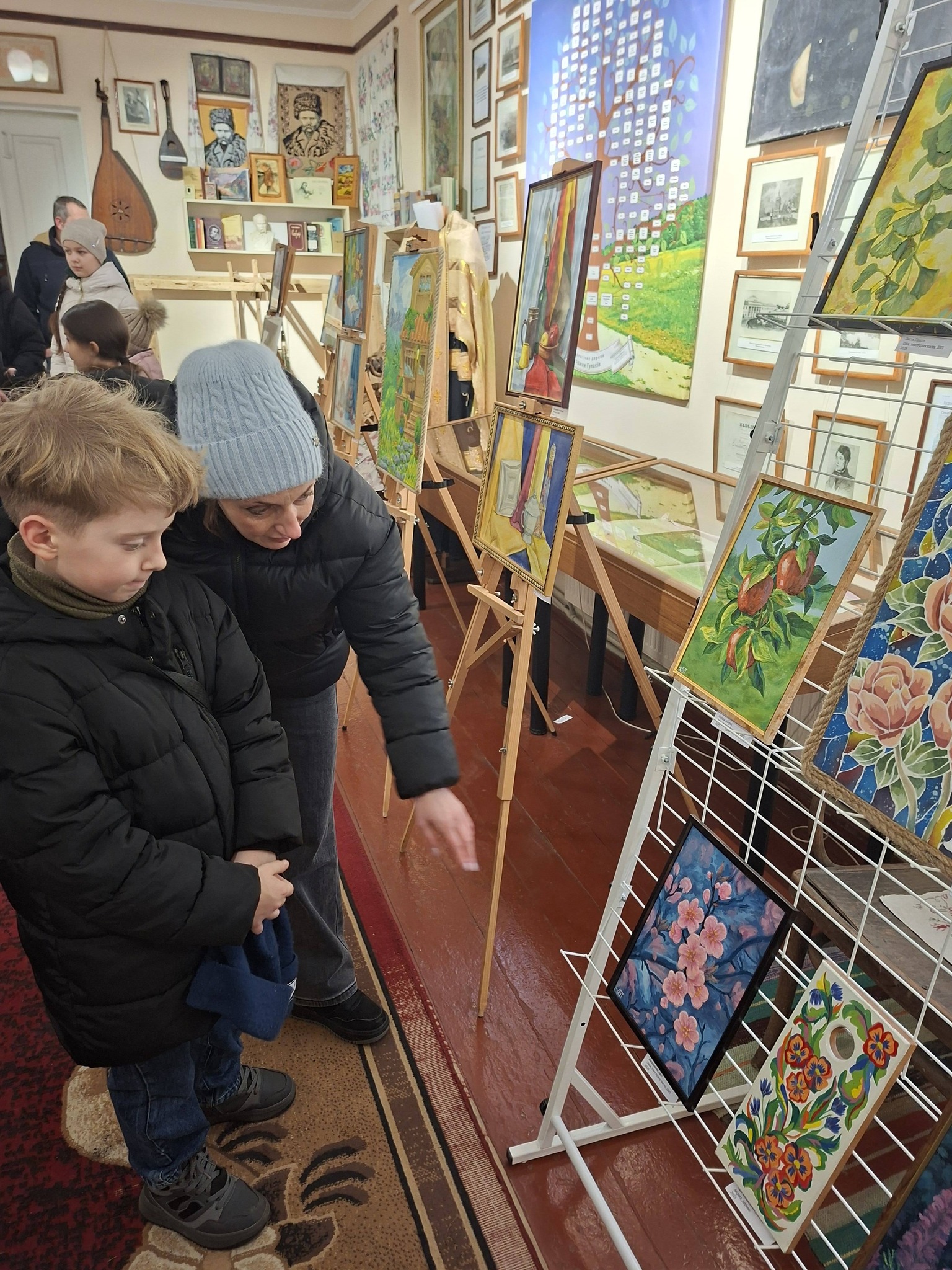 У виставковому просторі панувала чудова емоційна атмосфера – відвідувачі з захопленням знайомилися з творчими роботами талановитої мисткині, ходили від картини до картини, з задоволенням споглядаючи кожне наступне полотно, ділилися враженнями, висловлювали захоплення її талантом. Юлія Володимирівна розповіла про різновиди технік, змістовно і вичерпно відповіла на кожне запитання дітей та дорослих.