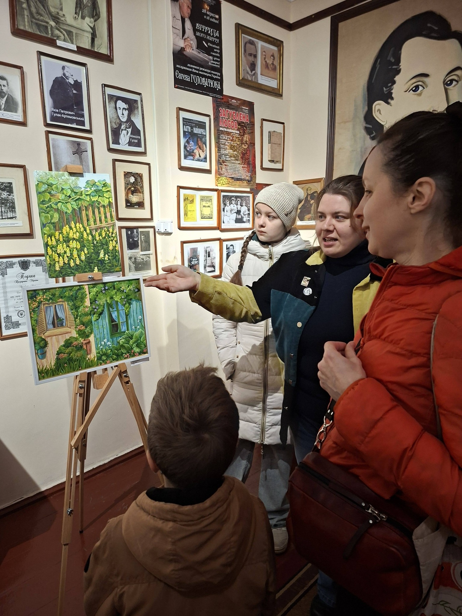 На закриття виставки робіт “Світ навколо мене” юної художниці Аліни Пустовіт завітали учні відділу образотворчого мистецтва Городищенська дитяча школа мистецтв ім С С Гулака- Артемовського з батьками та викладачкою Юлією Скорик.